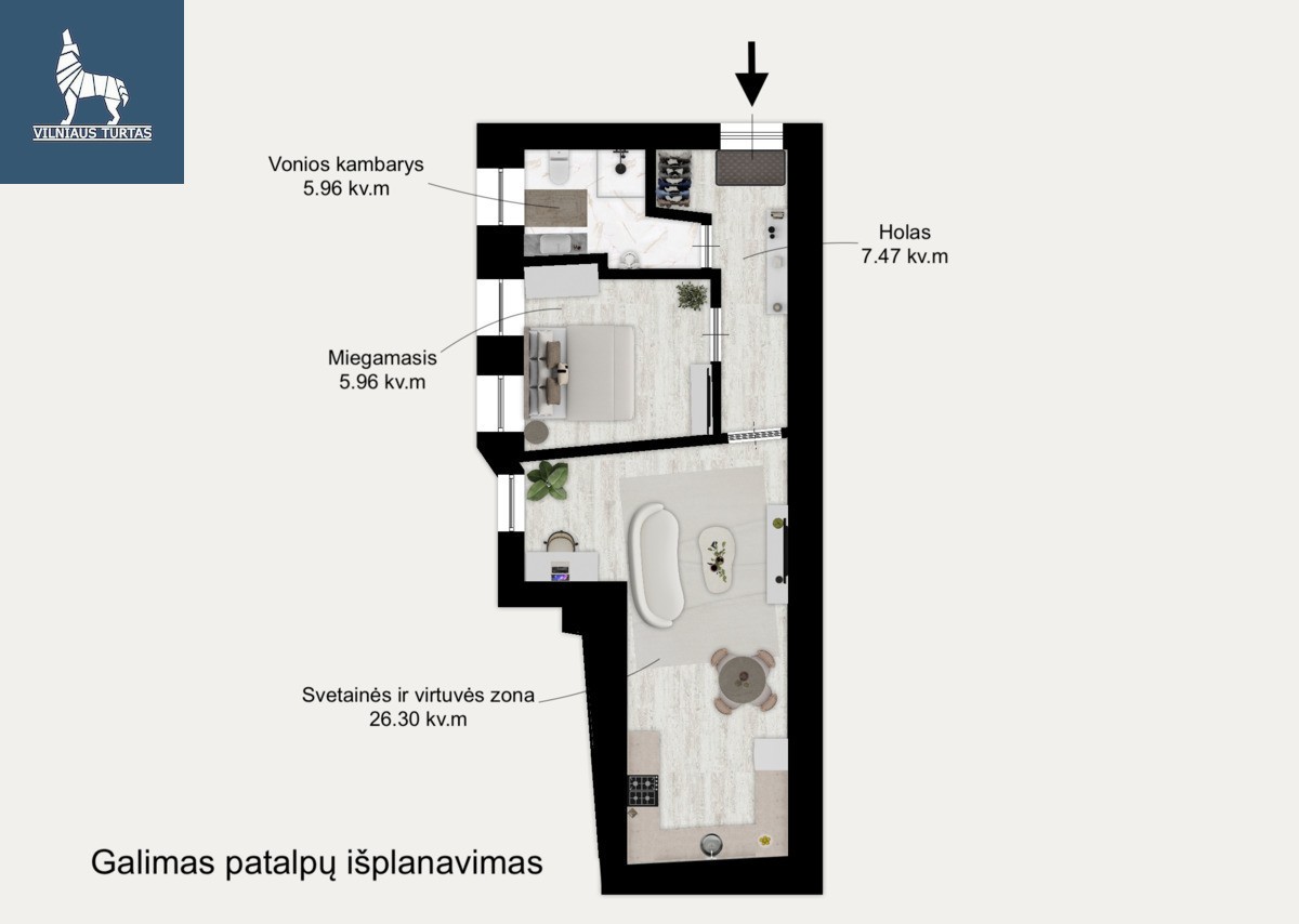 ✓ 50,78 kv. m funkcionaliai išdėstytos erdvės