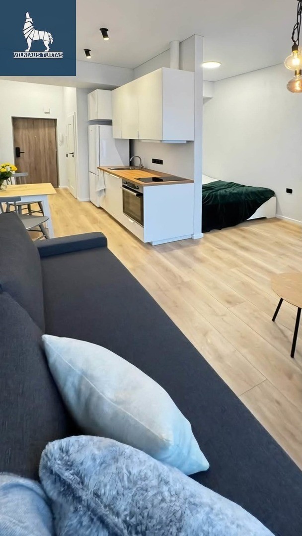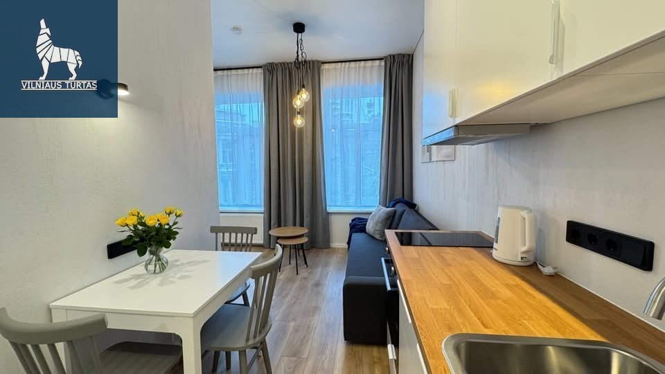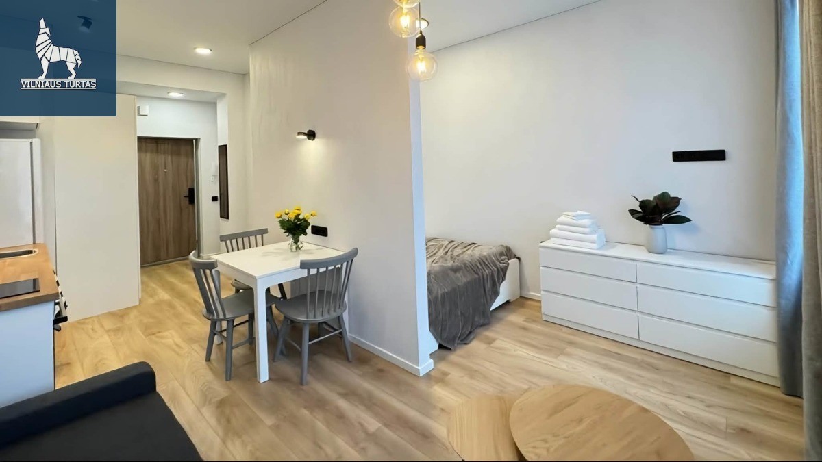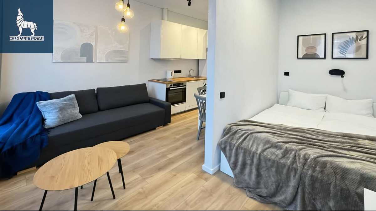 Nuomojamas naujai suremontuotas, modernus 1 kambario studijos tipo butas, įsikūręs Senamiestyje, puikioje vietoje – miesto centre.