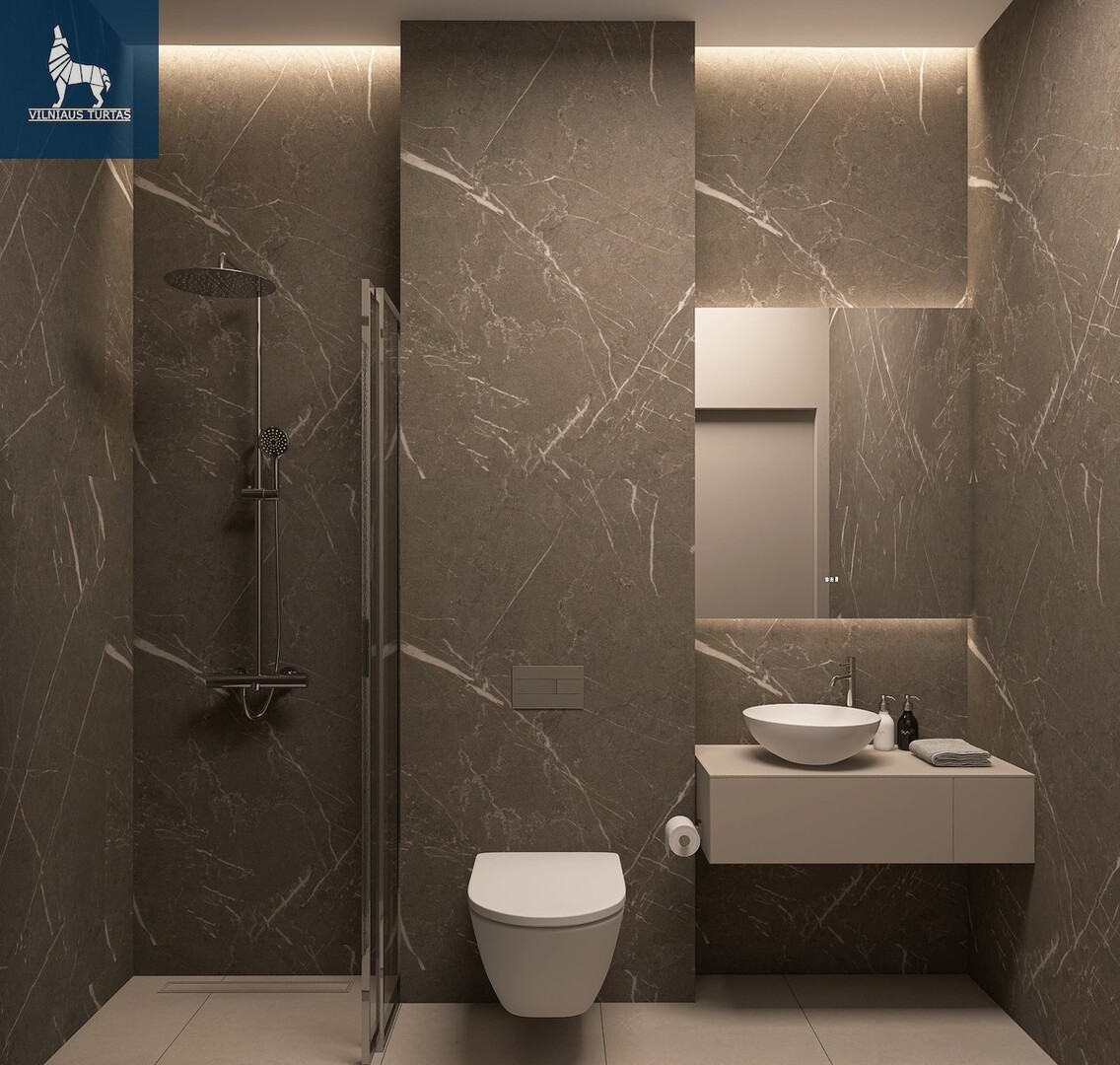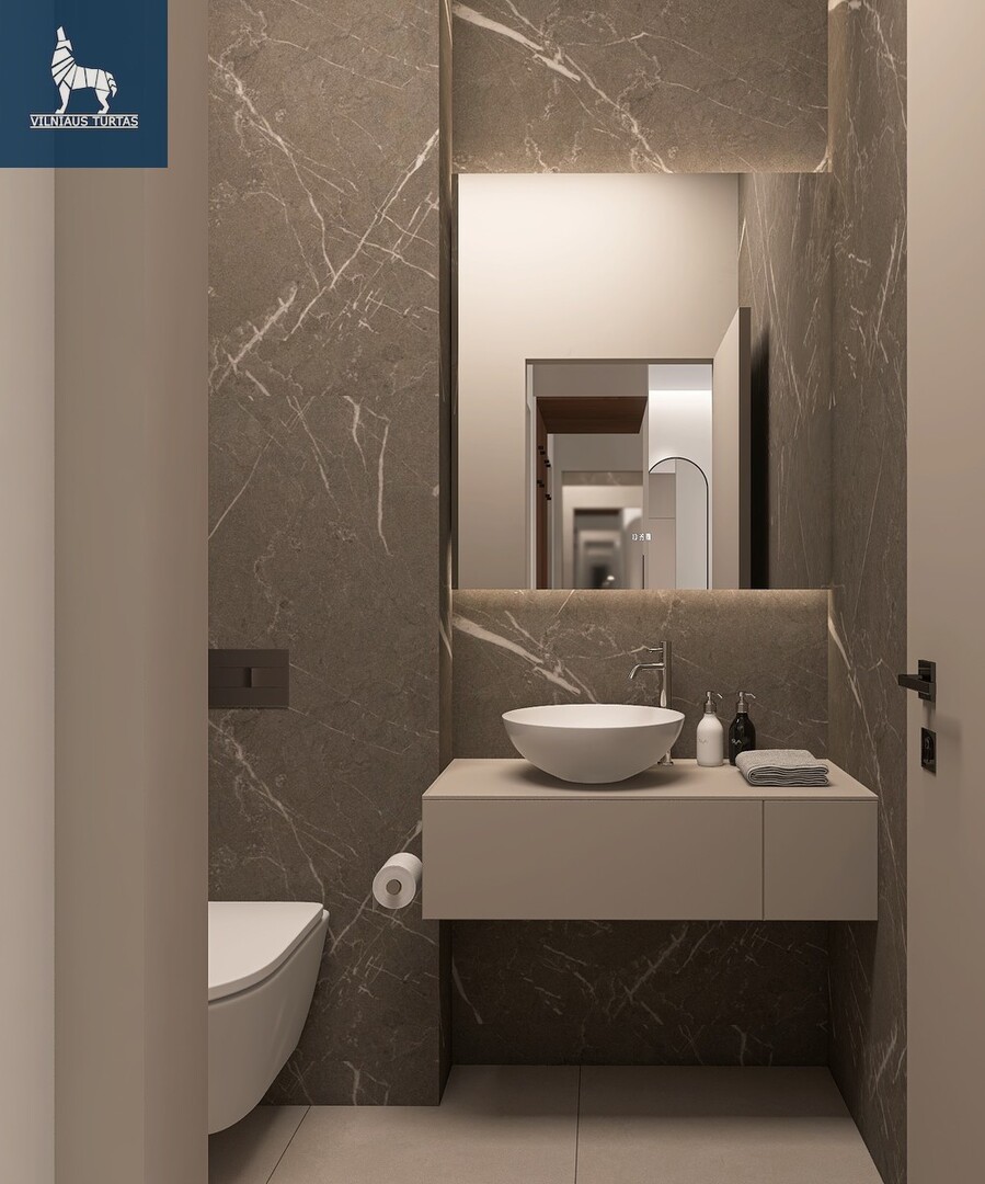 Butas parduodamas su daline apdaila, todėl galėsite įsirengti pagal jau parengtą individualų interjero projektą arba susikurti savo viziją.