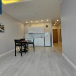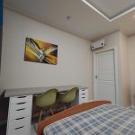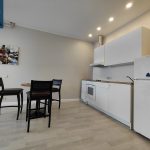 Virtuvės zona sujungta su kambariu, miegamasis – izoliuotas, vonios kambarys ir WC – kartu.