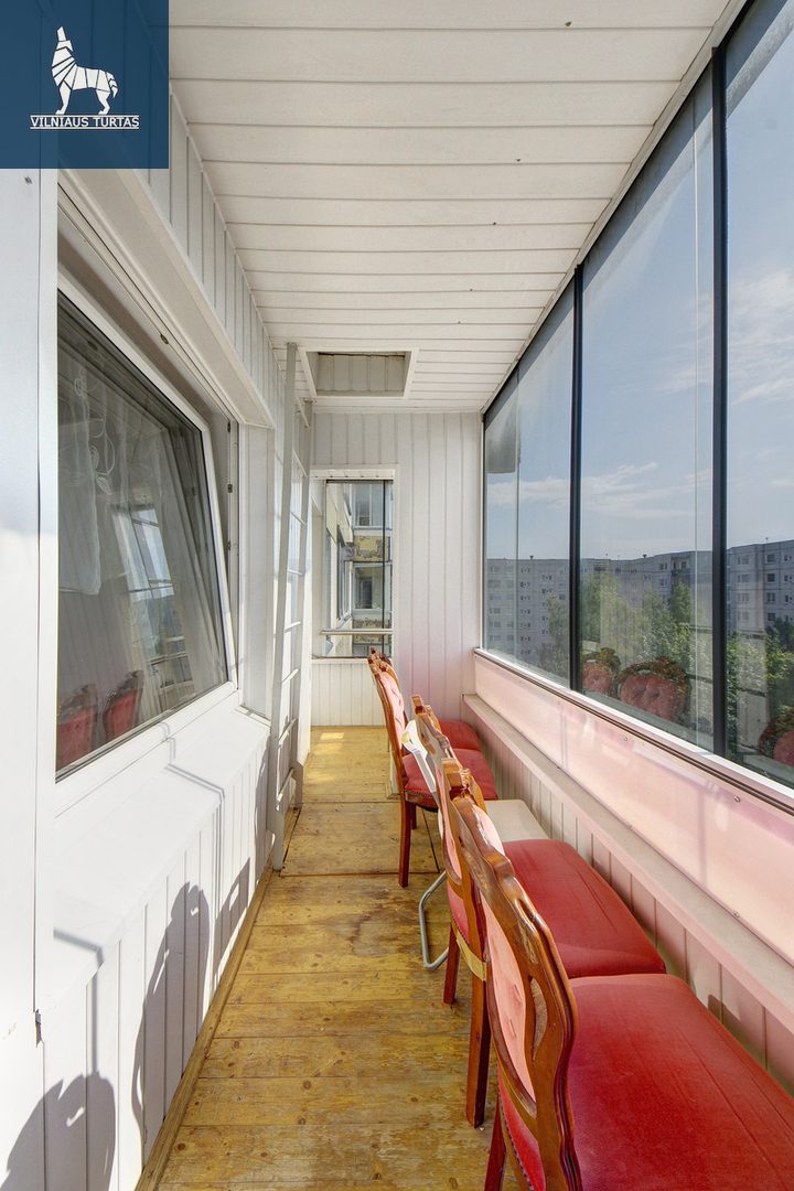 – Erdvus, įstiklintas balkonas, į kurį galima patekti iš svetainės ir miegamojo kambarių.