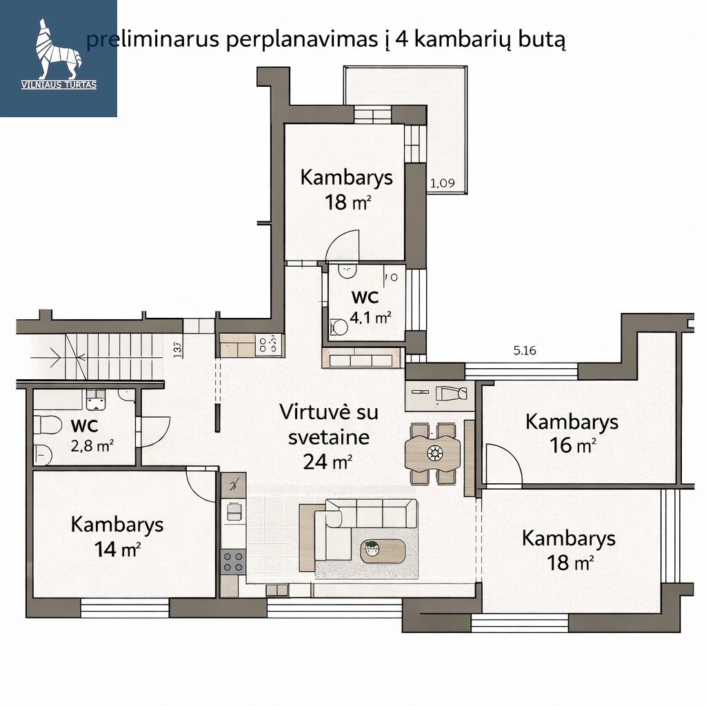Ieškote tikrai erdvaus buto mieste, o ne „standartinių“ kvadratų?