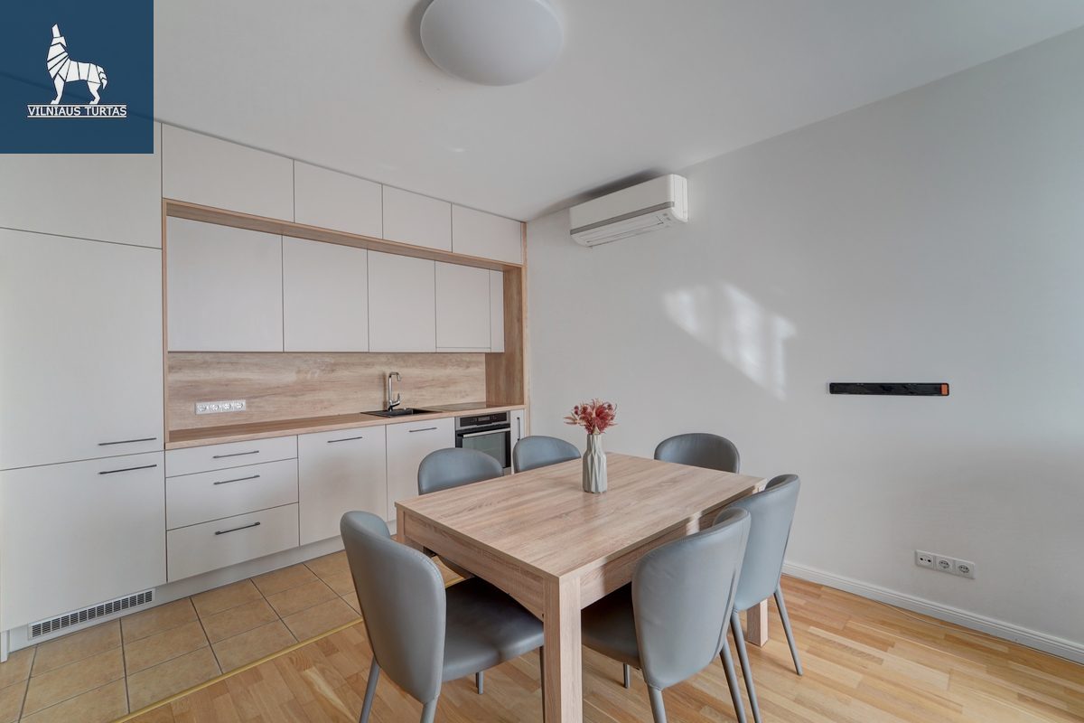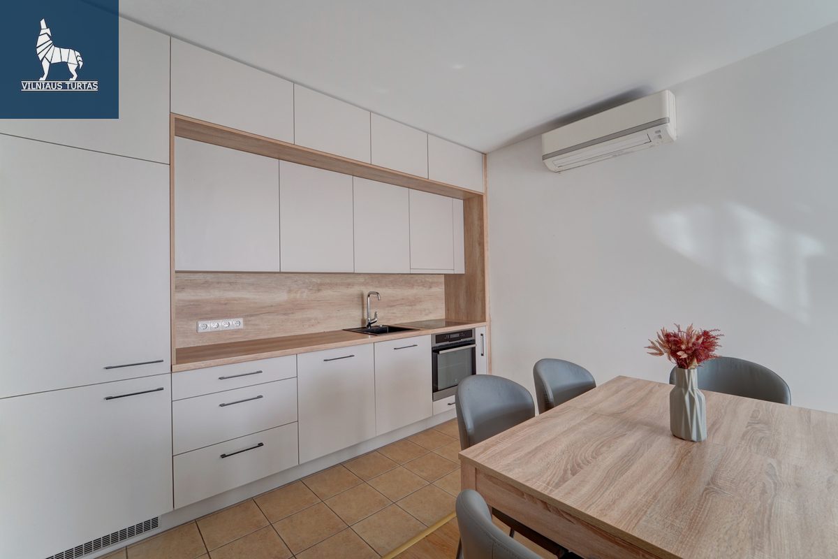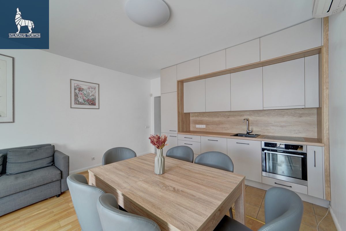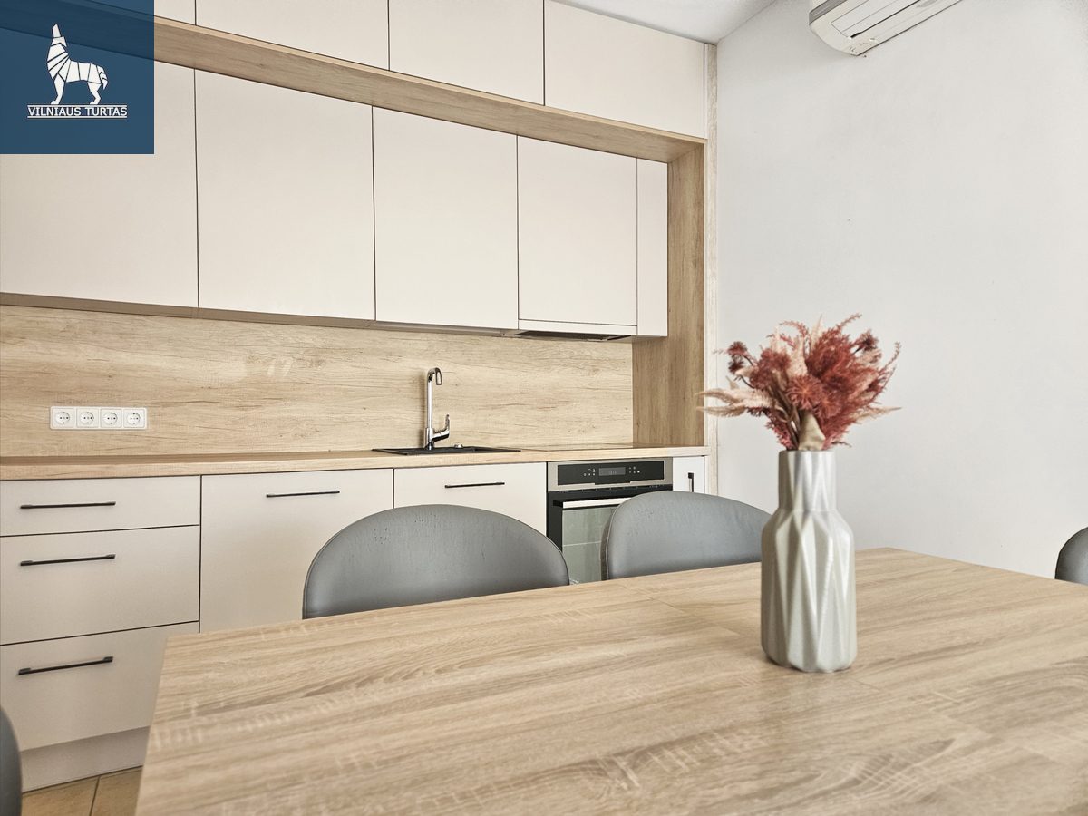– Patogus išplanavimas: svetainė sujungta su naujai įrengta virtuve, du atskiri miegamieji;