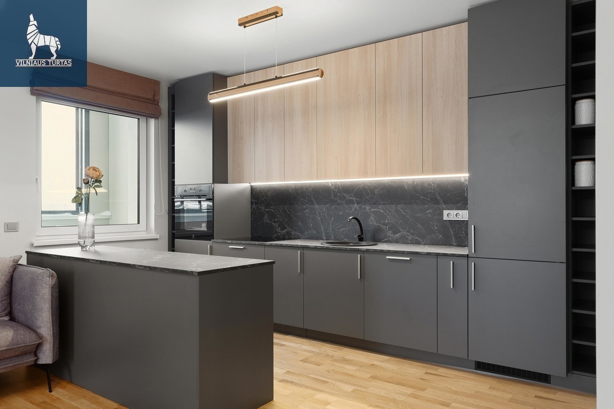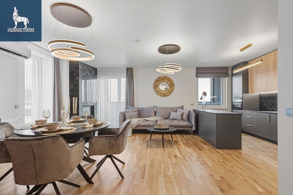 Parduodamas erdvus 4 kambarių butas su židiniu, didele terasa ir net dviem erdviais balkonais Vilniuje, projekte „K17”, esančiame šalia Vilniaus centro, Daugėliškio gatvėje, viename sparčiausiai besivystančių Vilniaus mikrorajonų, Šnipiškėse.