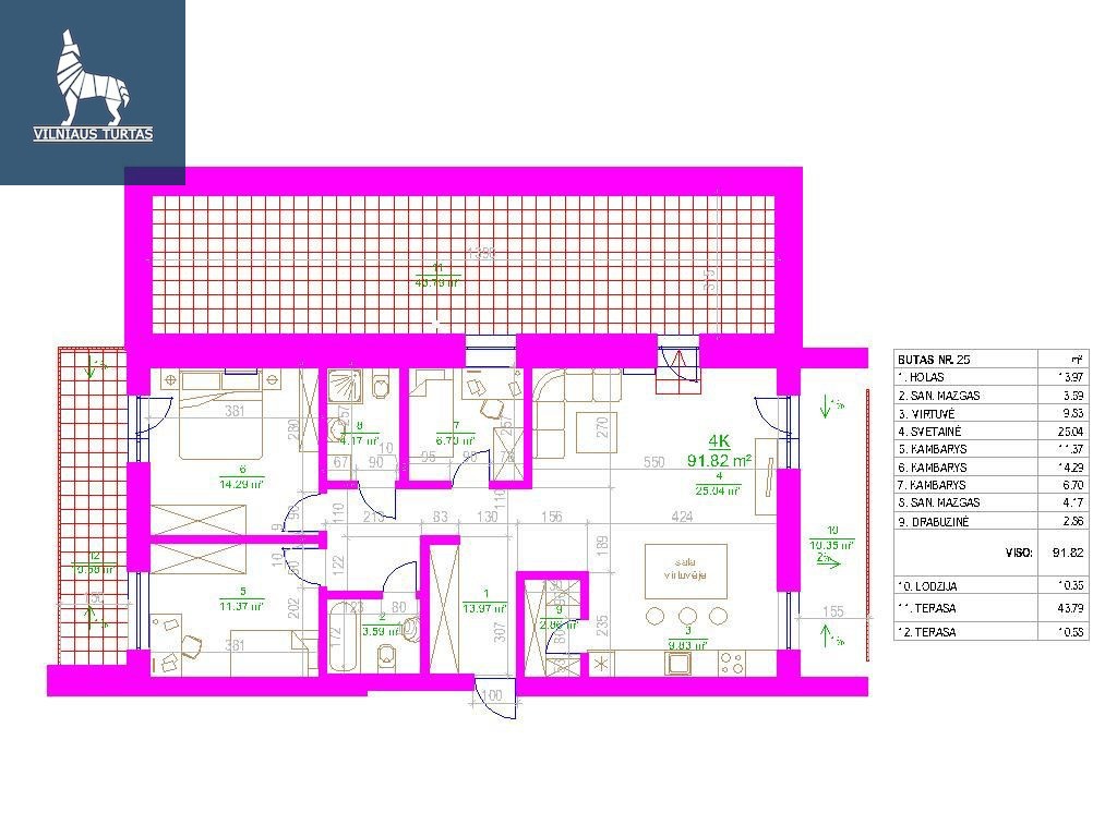 – Terasa 43,79 m². (terasa neįtraukta į bendrą buto plotą!)