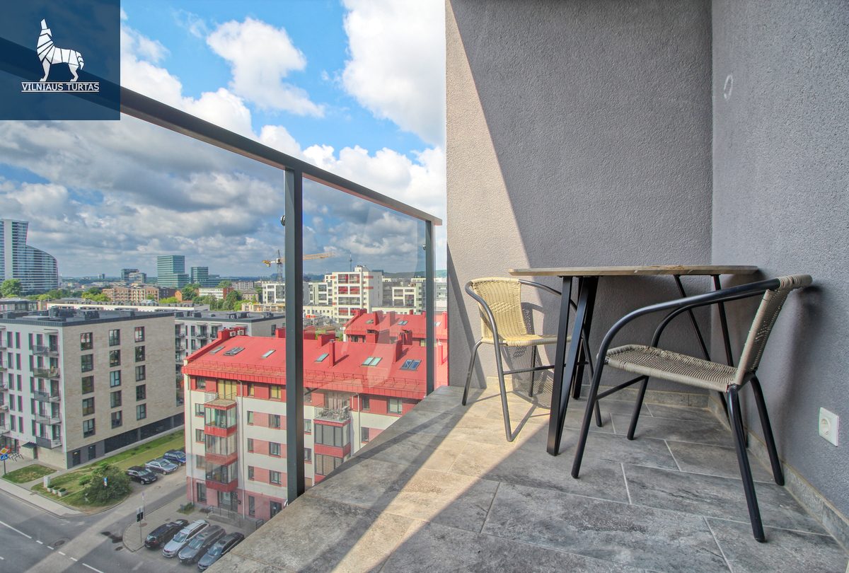 – Platus balkonas, iš kurio atsiveria vaizdas į miestą.