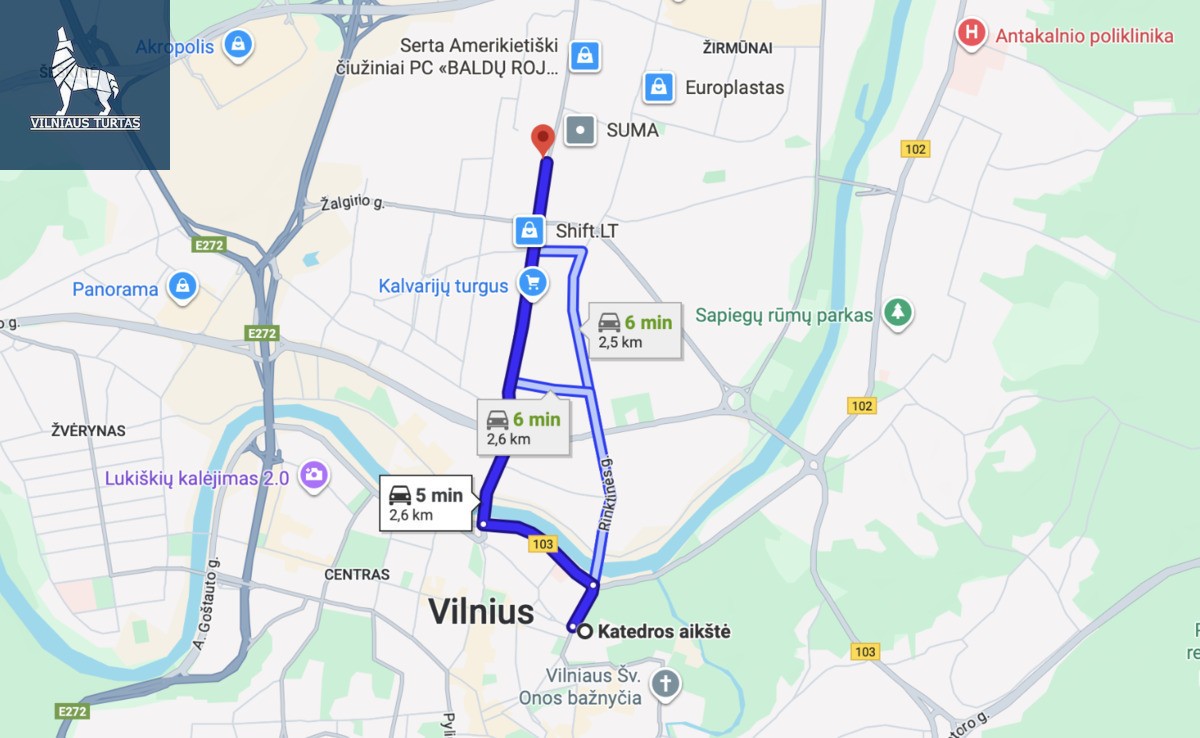 ✔️ Iki Katedros aikštės pėsčiomis ~30–40 min