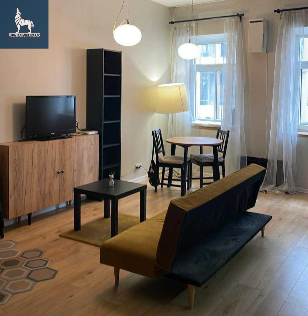 Išnuomojamas skoningai ir moderniai įrengtas 1,5 kambario butas Šnipiškėse, Kalvarijų g., 35 kv.m., 2 aukštas iš 3, su veikiančiu ŽIDINIU jaukiems vakarams.