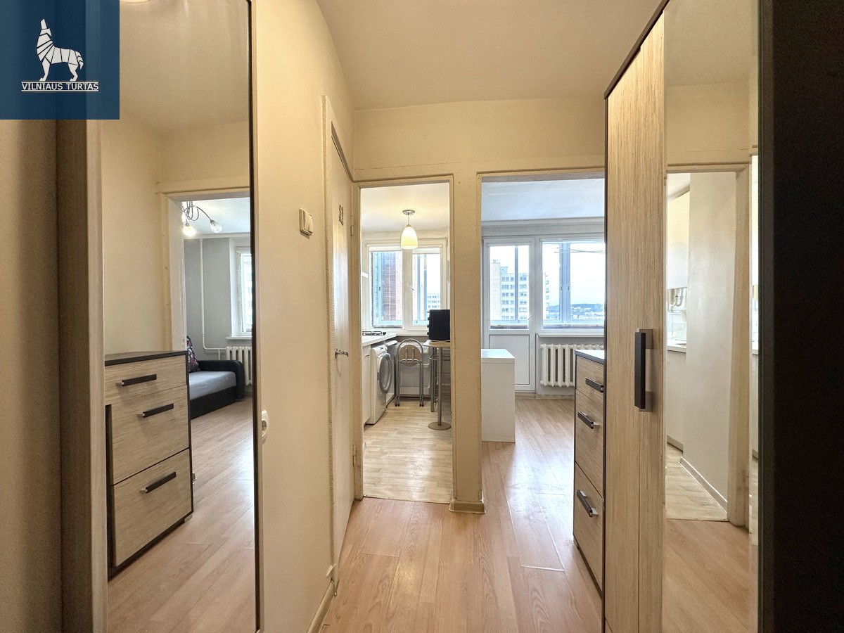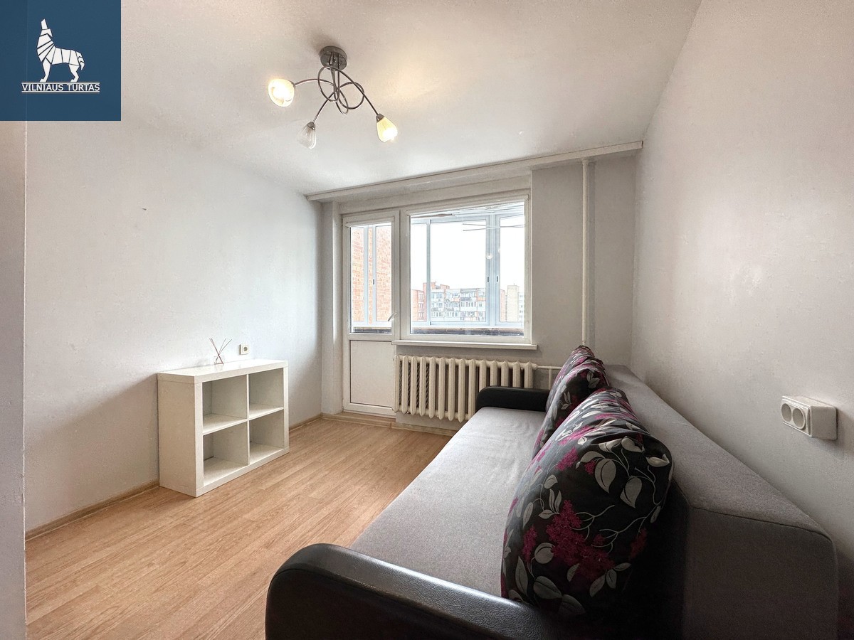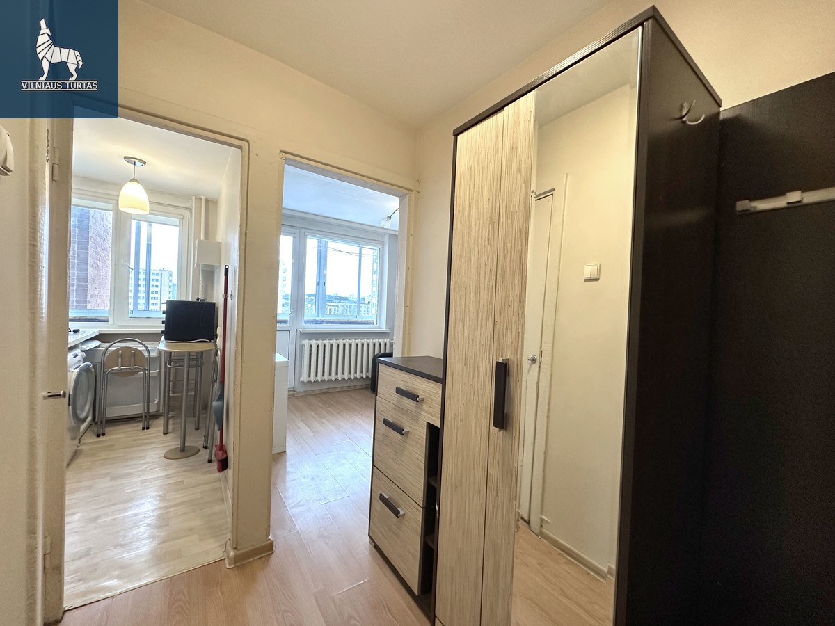 7 aukštas iš 9, bendras plotas 21 kv.m., statyba 1971 m., mūrinis namas, atskira virtuvė, atskiras kambarys, vonia ir tualetas kartu, įstiklintas tvarkingas balkonas.