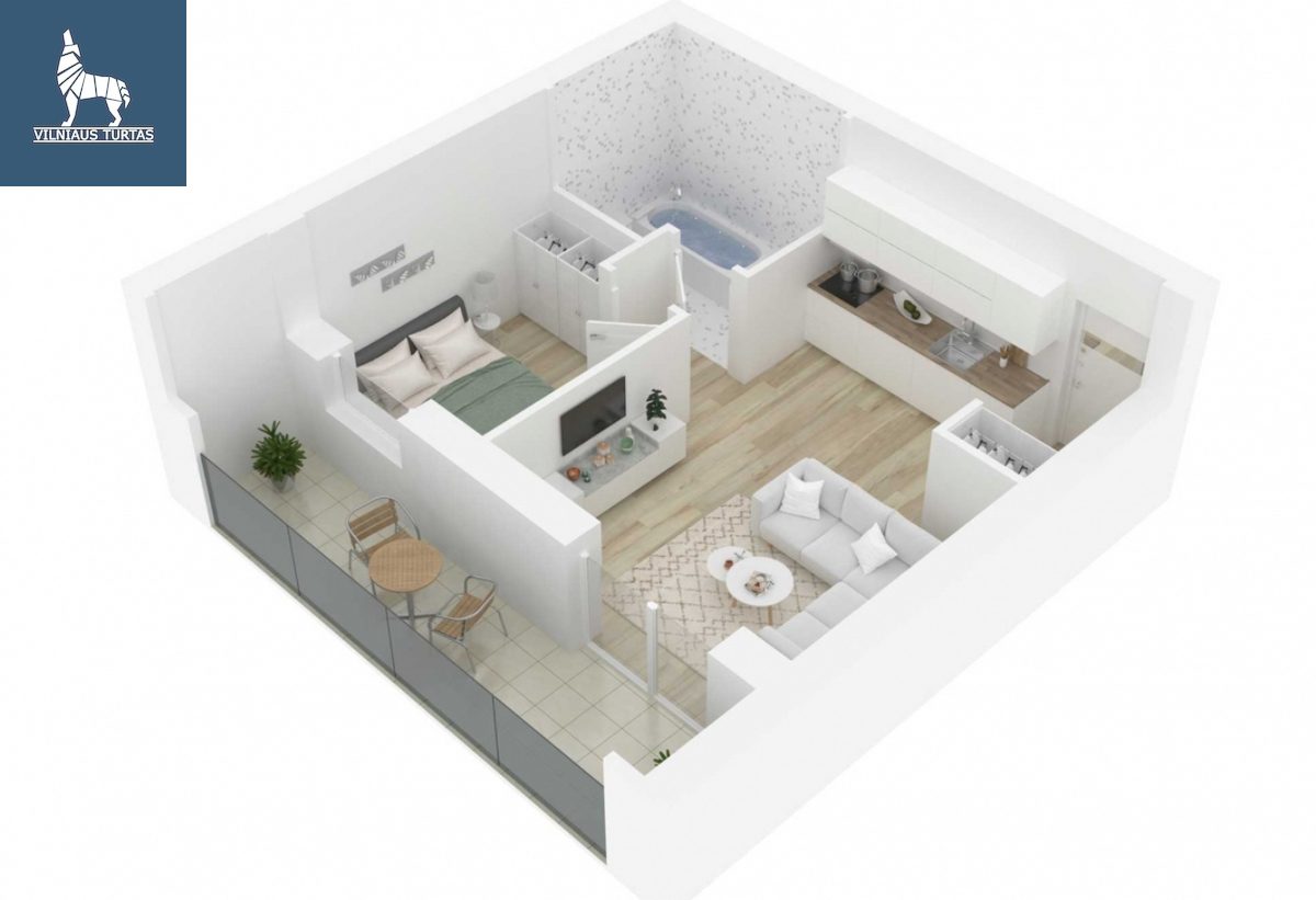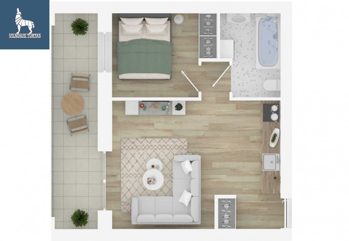 – Balkonas 10,35 m². (balkonas neįtrauktas į bendrą buto plotą!)