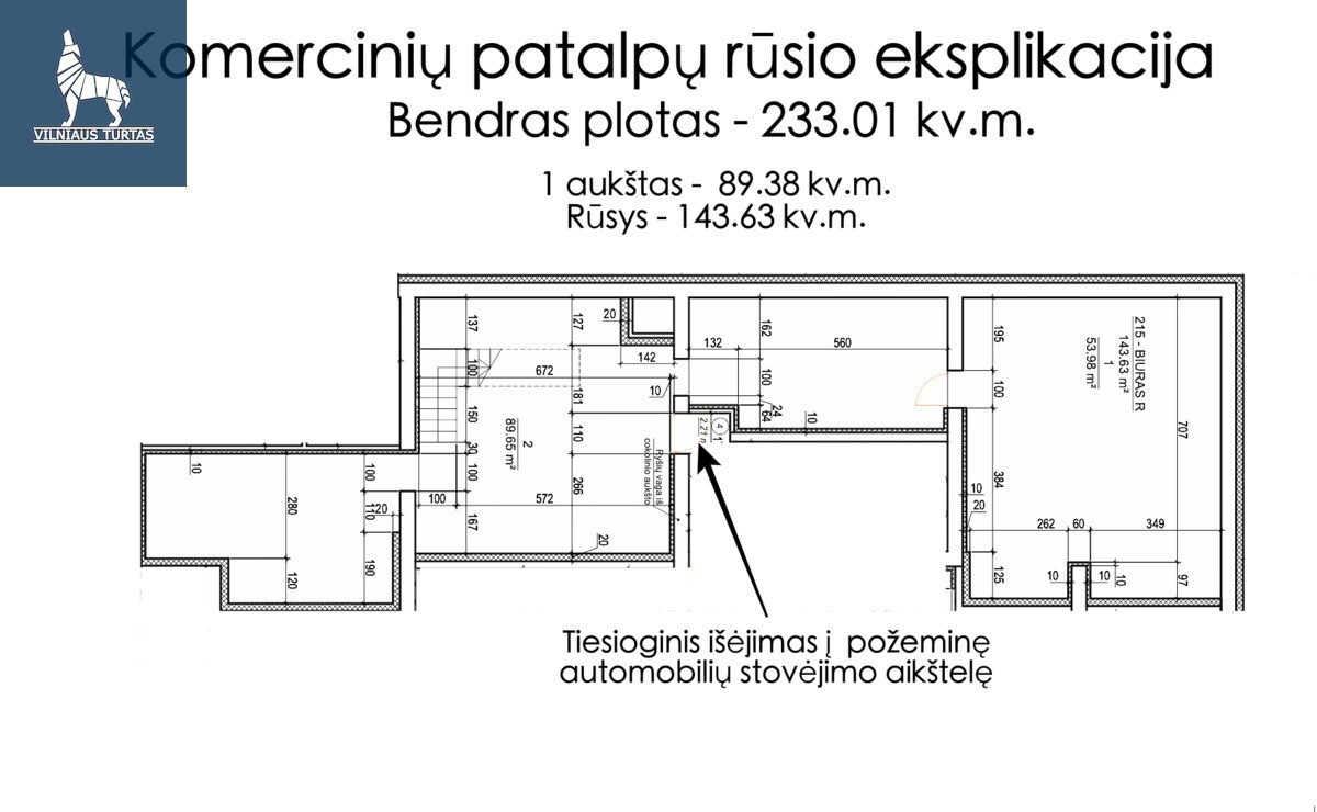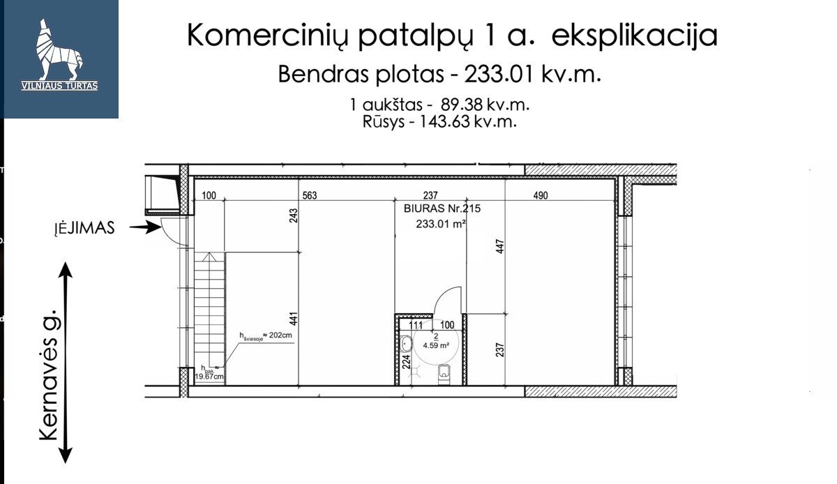 Parduodamos patalpos per du aukštus Kernavės g. 17-215, Šnipiškėse, Vilniuje, 233.01 kv.m ploto