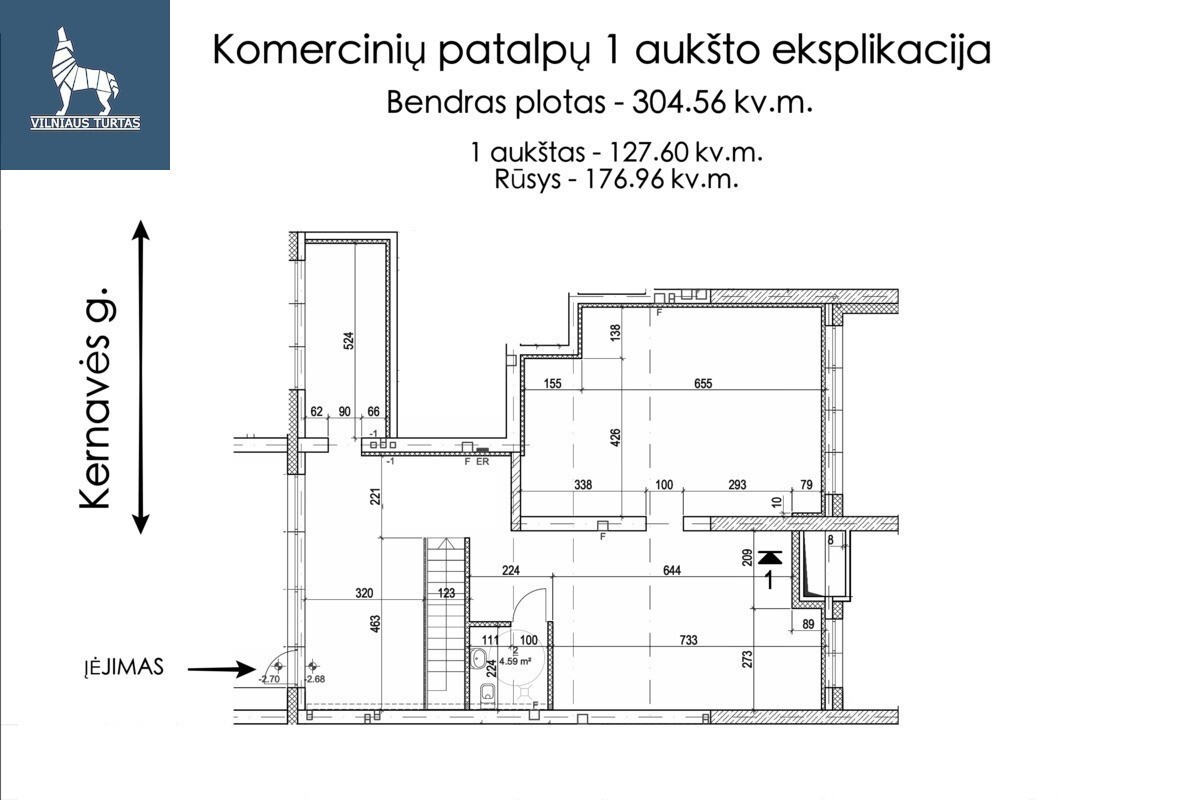 Parduodamos patalpos per du aukštus Kernavės g. 17-225, Šnipiškėse, Vilniuje, 304.56 kv.m ploto