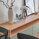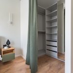 Baldai: Visi korpusiniai baldai gaminti pagal individualų užsakymą, apgalvotos daiktų laikymo vietos.