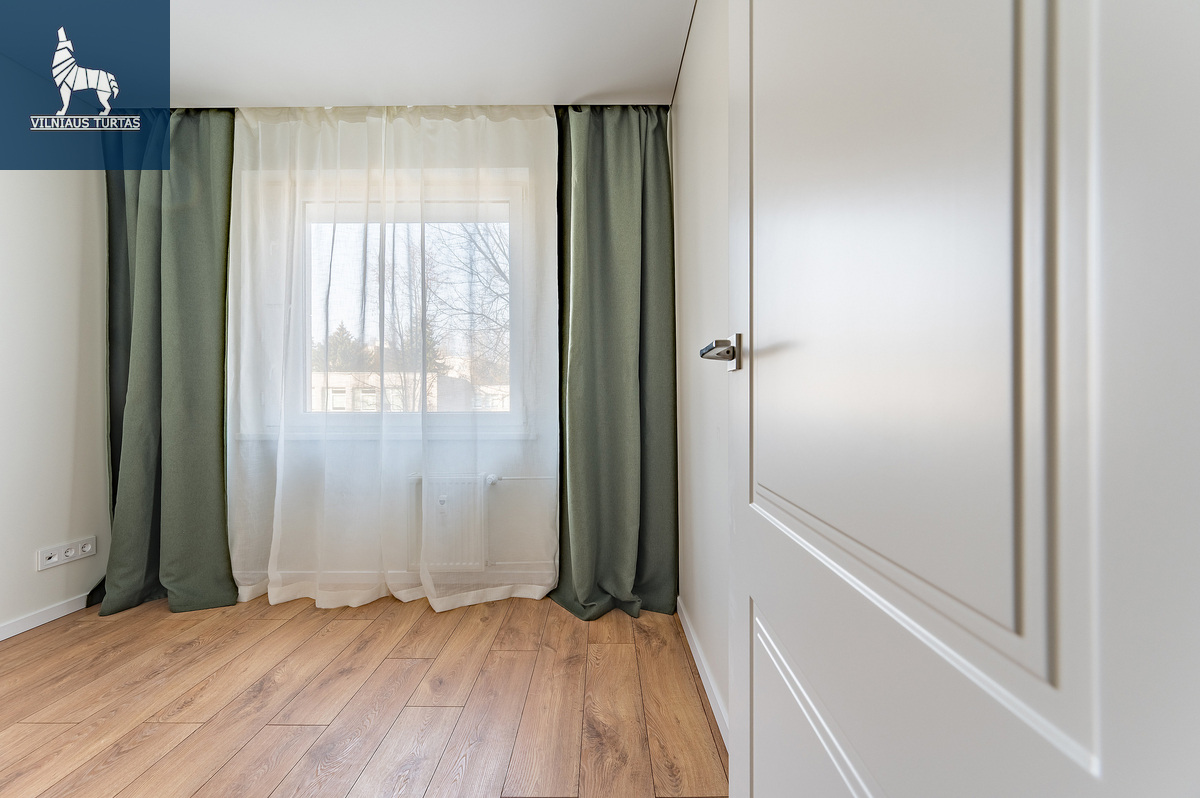 Visiškai naujas įrengimas (2026 m.): Pakeista viskas – nuo elektros instaliacijos ir vamzdynų iki baldų. Po remonto bute niekas negyveno.
