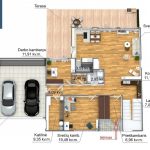 Parduodamas kokybiškai pastatytas ir itin funkcionaliai suplanuotas vieno aukšto su mansarda, 280 kv. m namas Tarandėje, Kamarausko gatvėje. Šis būstas – puikus pasirinkimas šeimai, ieškančiai erdvės, komforto ir ramybės, bet kartu norinčiai gyventi arti miesto. Namas pastatytas 2011 metais, energetinė klasė – B, šildymas dujinis, įrengta rekuperacijos sistema, o vasarą karštą vandenį šildo ant stogo esantys saulės kolektoriai. Grindys išklotos kokybiškomis parketlentėmis, kiekvienoje patalpoje galima individualiai reguliuoti temperatūrą. Svetainėje įrengtas akmeninis židinys suteikia jaukumo šaltuoju metų laiku, o vitrininiai langai įleidžia daug natūralios šviesos ir leidžia mėgautis vaizdu į privačią nuosavą erdvę.