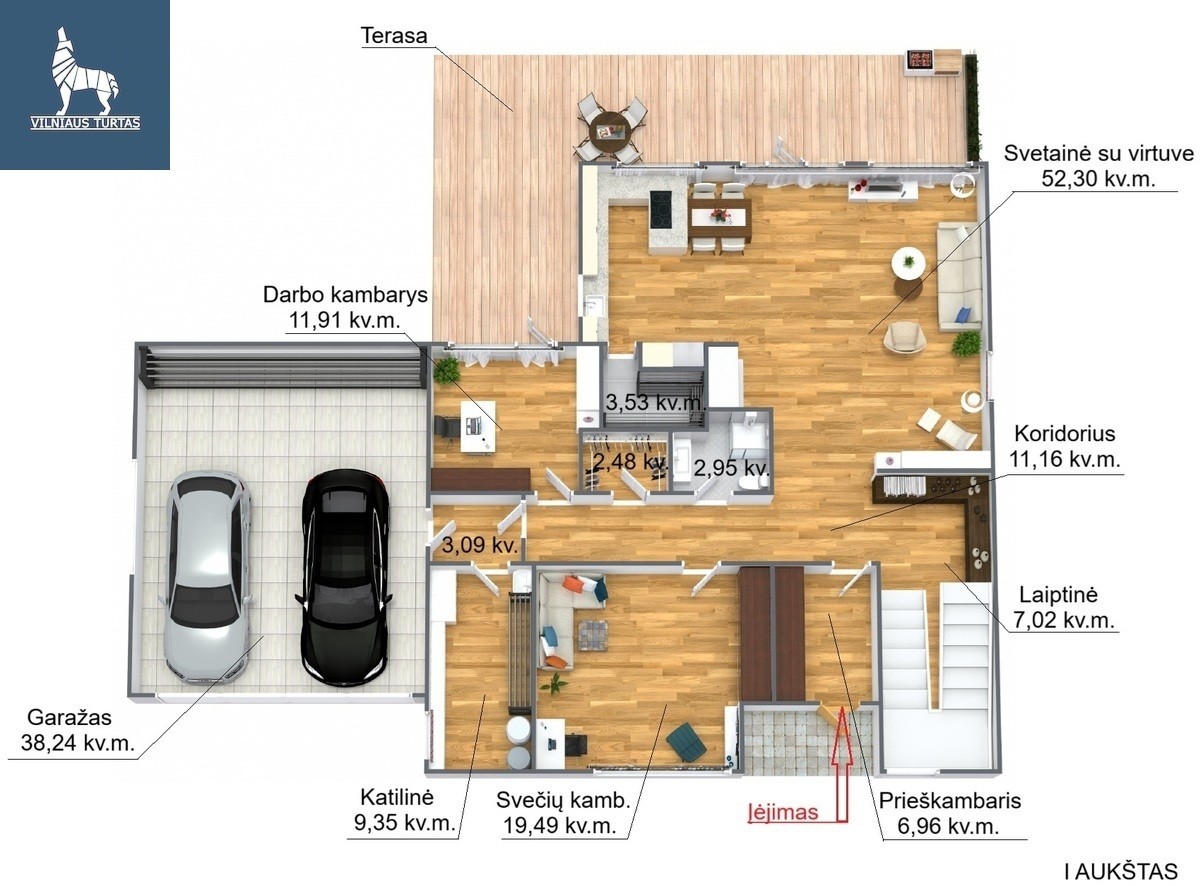 Parduodamas namas Juozo Kamarausko g. 2, Tarandėje, Vilniuje, 280 kv.m ploto, 2 aukštai