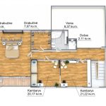 Namo viduje suplanuota viskas, ko reikia patogiam gyvenimui. Erdvi svetainė sujungta su virtuve, iš kurios galima patekti į terasą, šalia virtuvės įrengtas patogus sandėliukas. Čia yra trys atskiri miegamieji kambariai, darbo kambarys, svečių kambarys, du vonios kambariai bei didelė drabužinė. Garažas pritaikytas dviem automobiliams. Tai namai, kuriuose kiekvienas šeimos narys atras savo privačią erdvę.