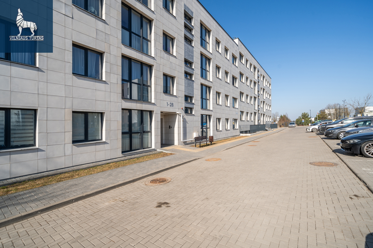 Su butu parduodama antžeminė parkavimo vieta ir sandėliukas (už papildomą 15 000 Eur kainą).