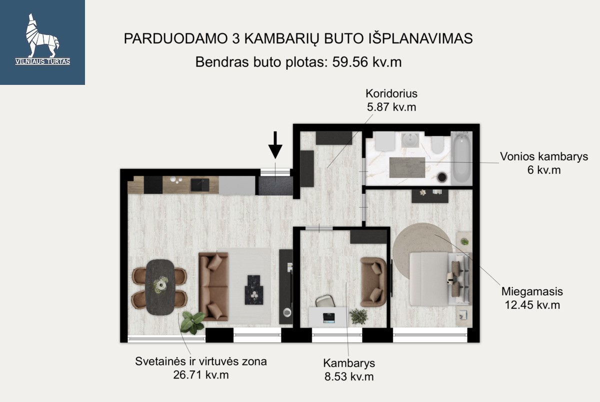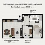 Parduodamas butas Tarandės g. 50, Tarandėje, Vilniuje, 59.56 kv.m ploto, 3 kambariai