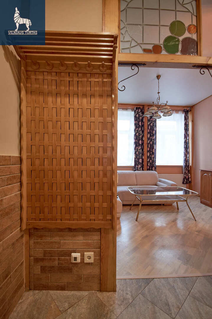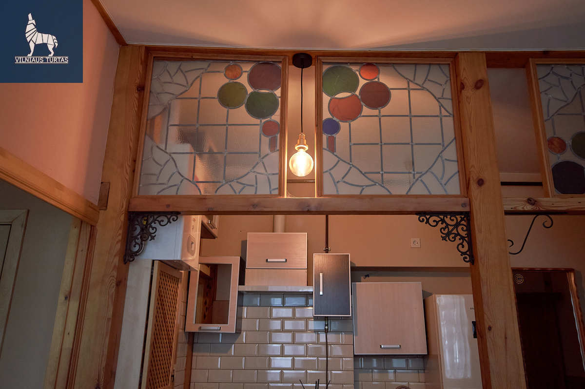 • Svetainę ir virtuvę skiria dalinė pertvara su baru bei vitražais;