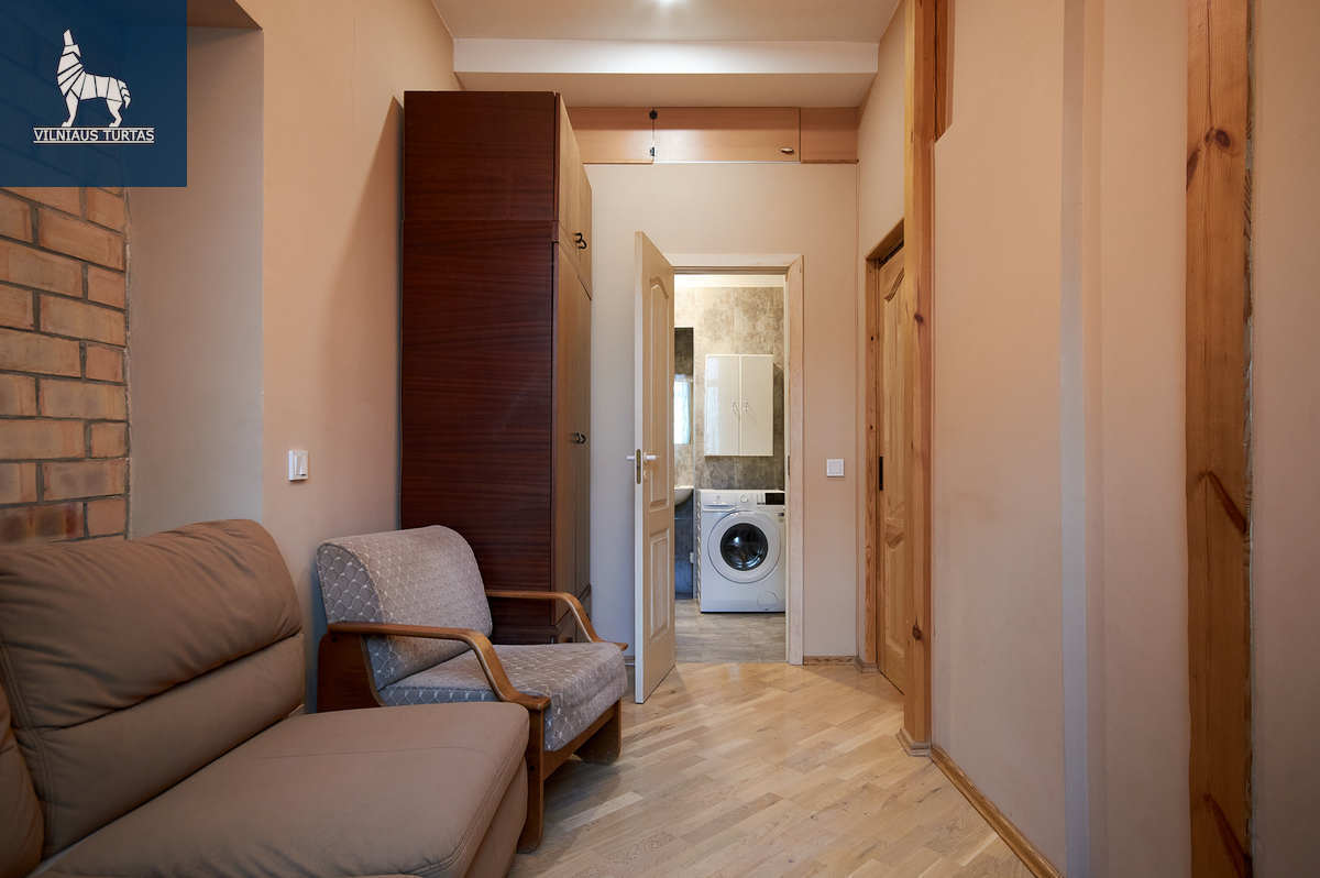 Nuomojamas 2 kambarių butas Užupyje, Krivių g. Užupis – tai ne šiaip rajonas, o atskira Respublika su savo bohemiška dvasia. Čia ramybė dera su menišku šurmuliu: jaukios kavinės, meno galerijos, Vilnelės pakrantė pasivaikščiojimams ir garsusis Užupio Angelas. Gyvendami čia, Senamiestį pasieksite pėsčiomis per kelias minutes, tačiau grįžę namo galėsite mėgautis lėtesniu tempu.
