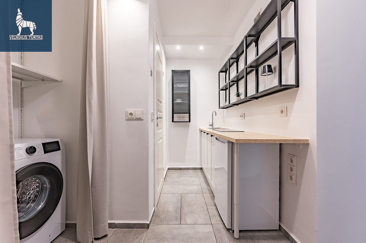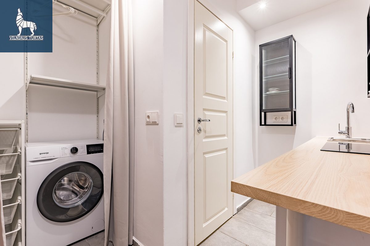 Labai kompaktiškas ir funkcionalus, pilnai įrengtas ir pilnai apstatytas, ir, be abejo, kartu labai žavingas bei jaukus butas jūsų poreikiams Užupyje. Daug komplimentų galima išsakyti šiam butukui.
