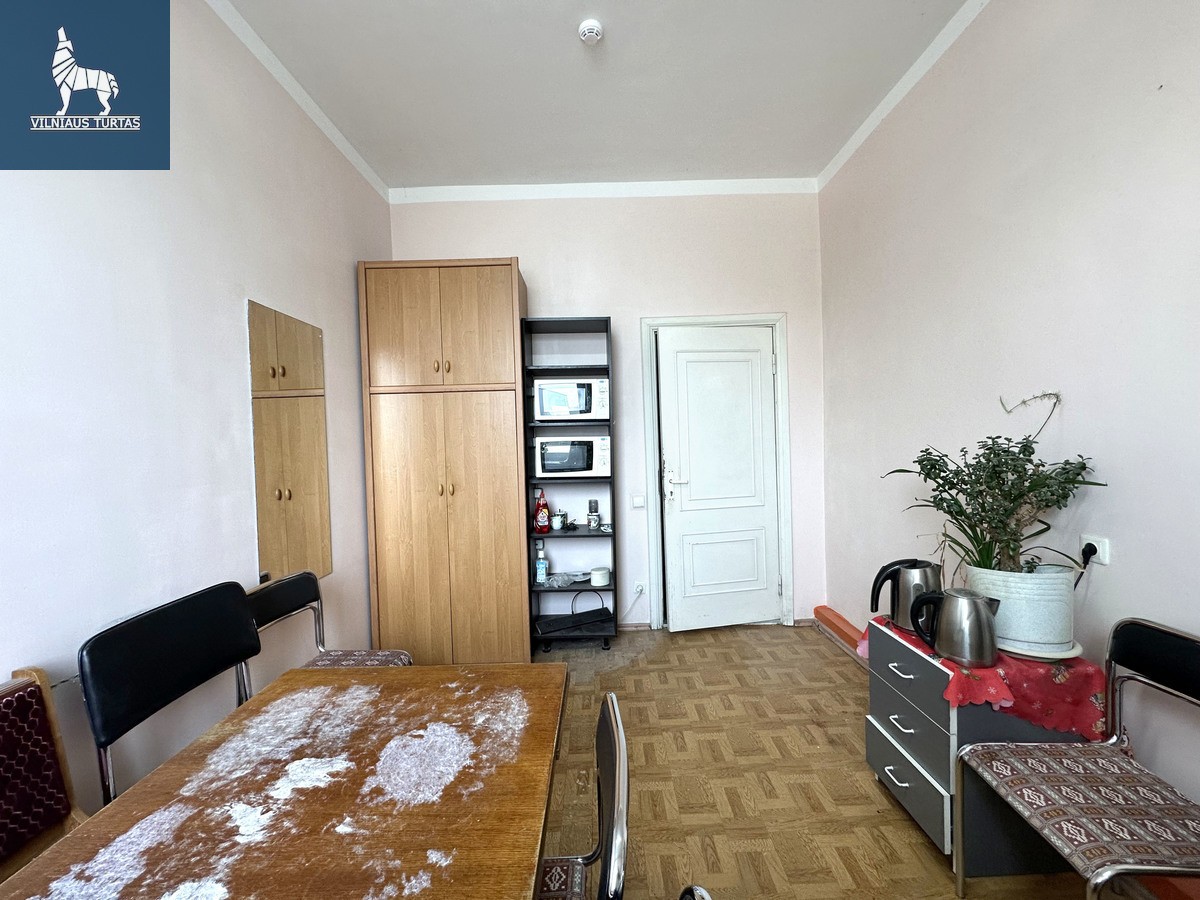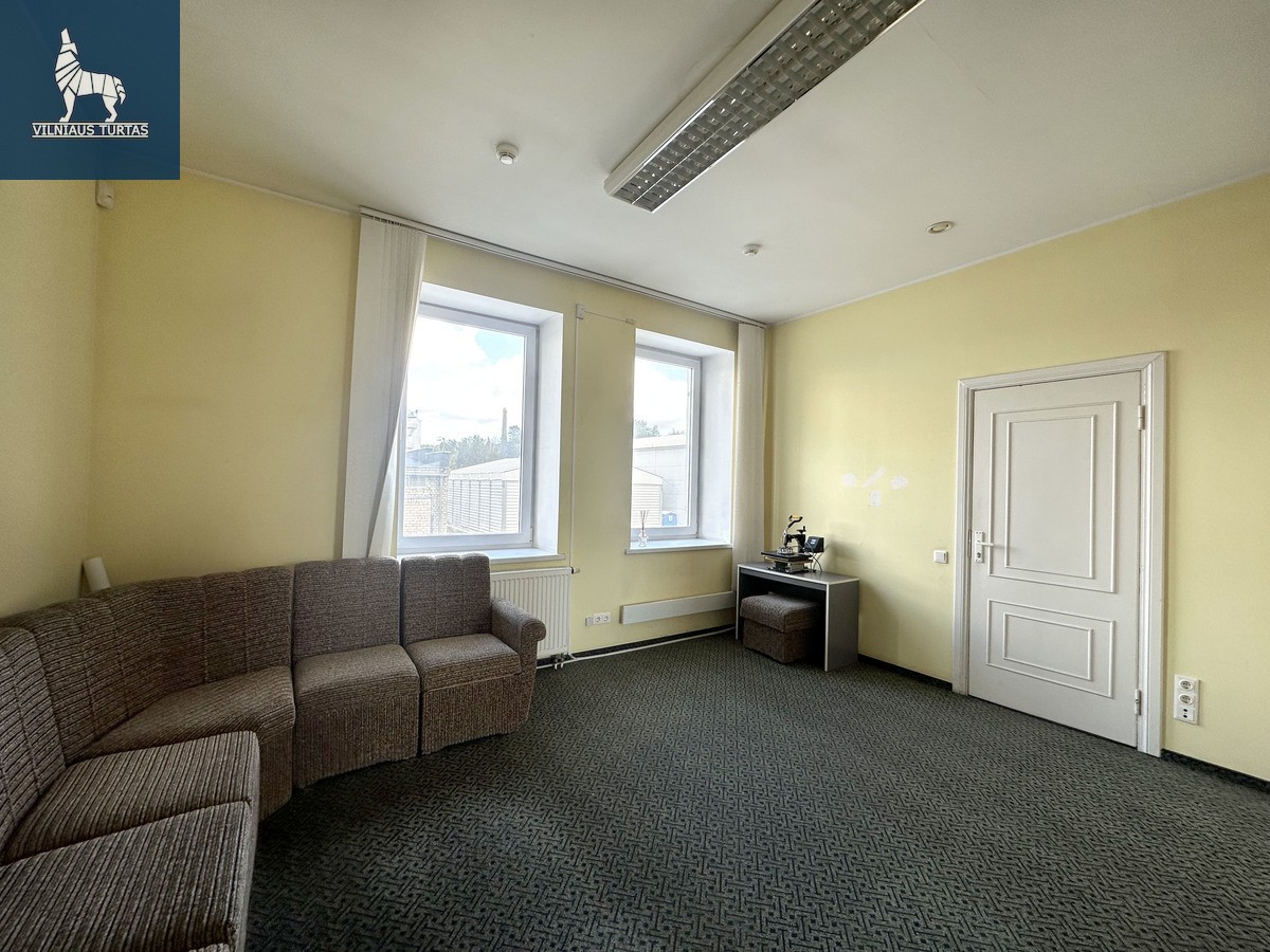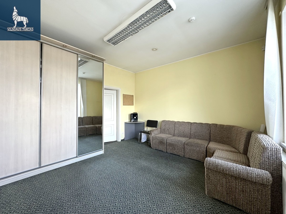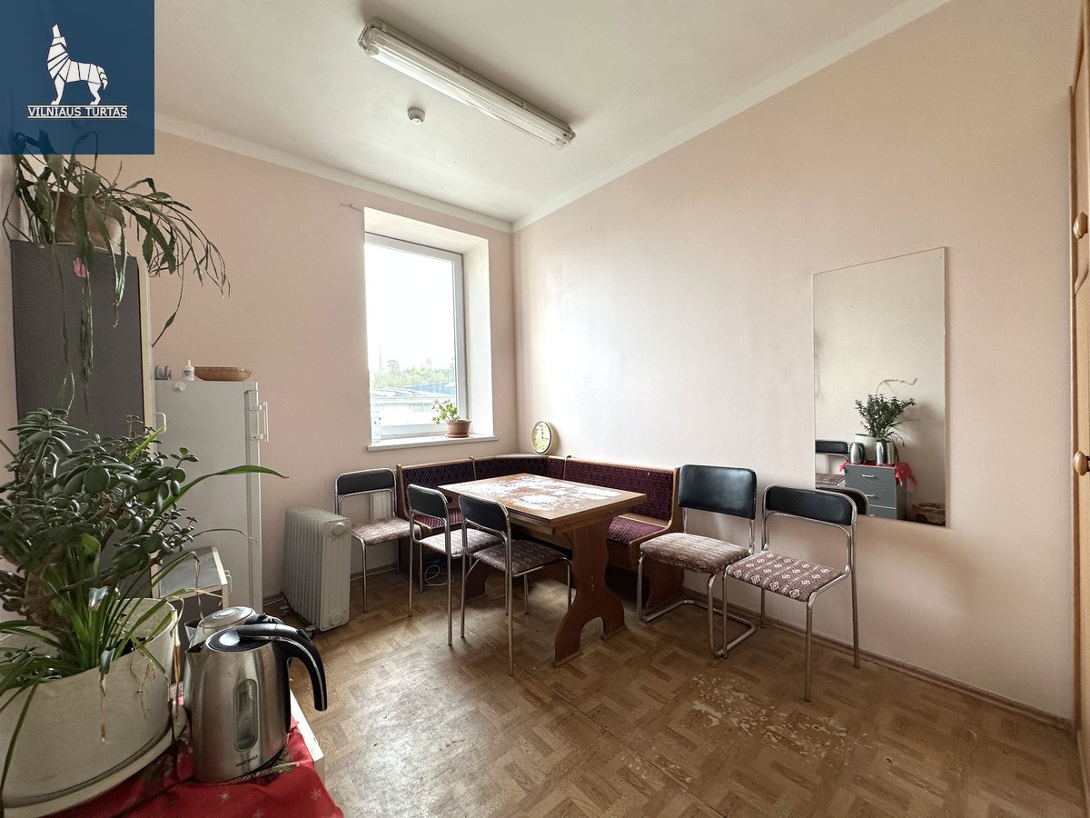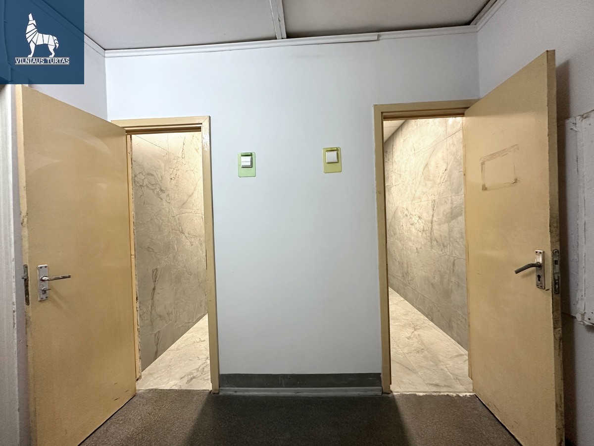 • Maži kabinetai: 18,26 kv. m; 9,55 kv. m (buhalterija); 7,54 kv. m; 11,38 kv. m (virtuvėlė)