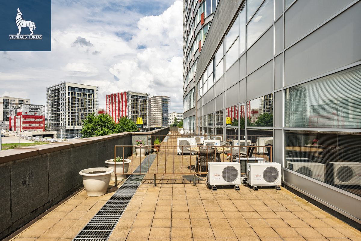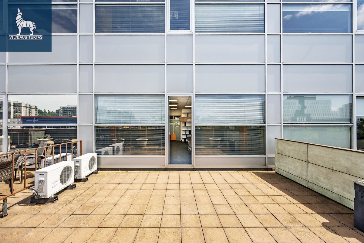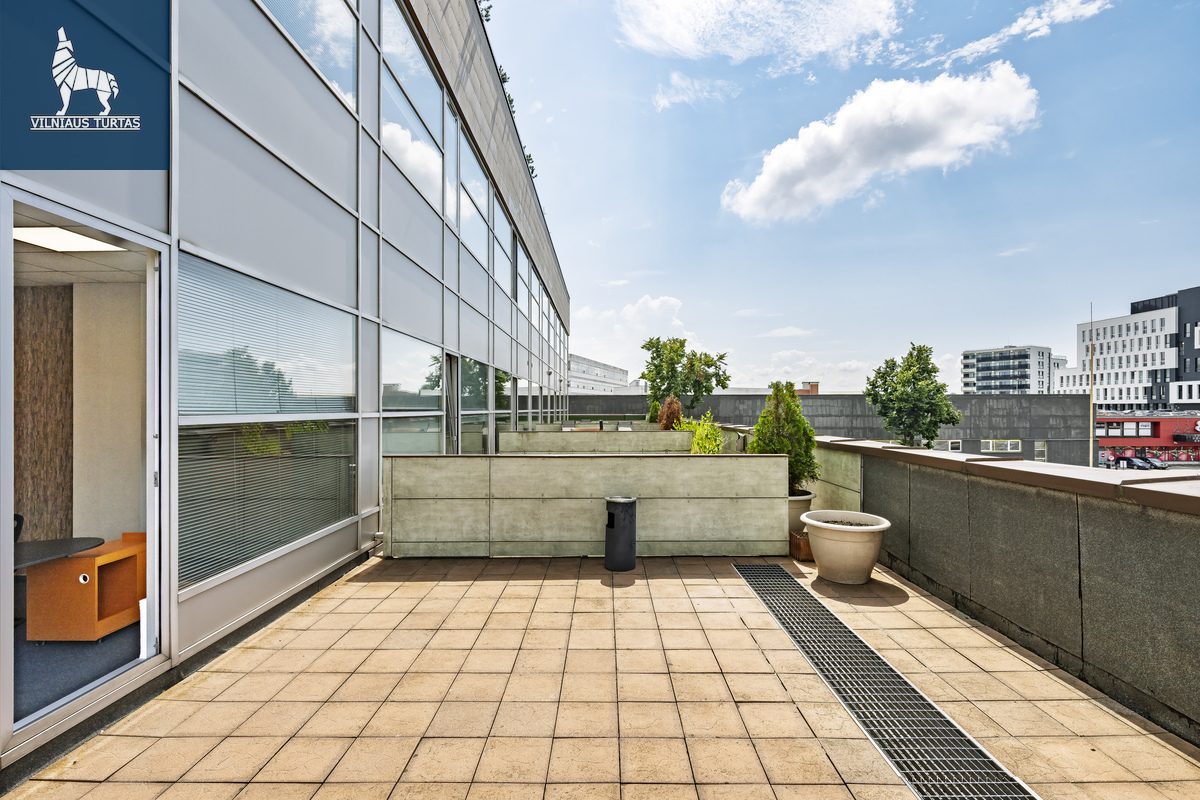 Parduodamos šiuolaikiškos administracinės patalpos su erdvia 24,59 m² terasa, esančios trečiame aukšte.