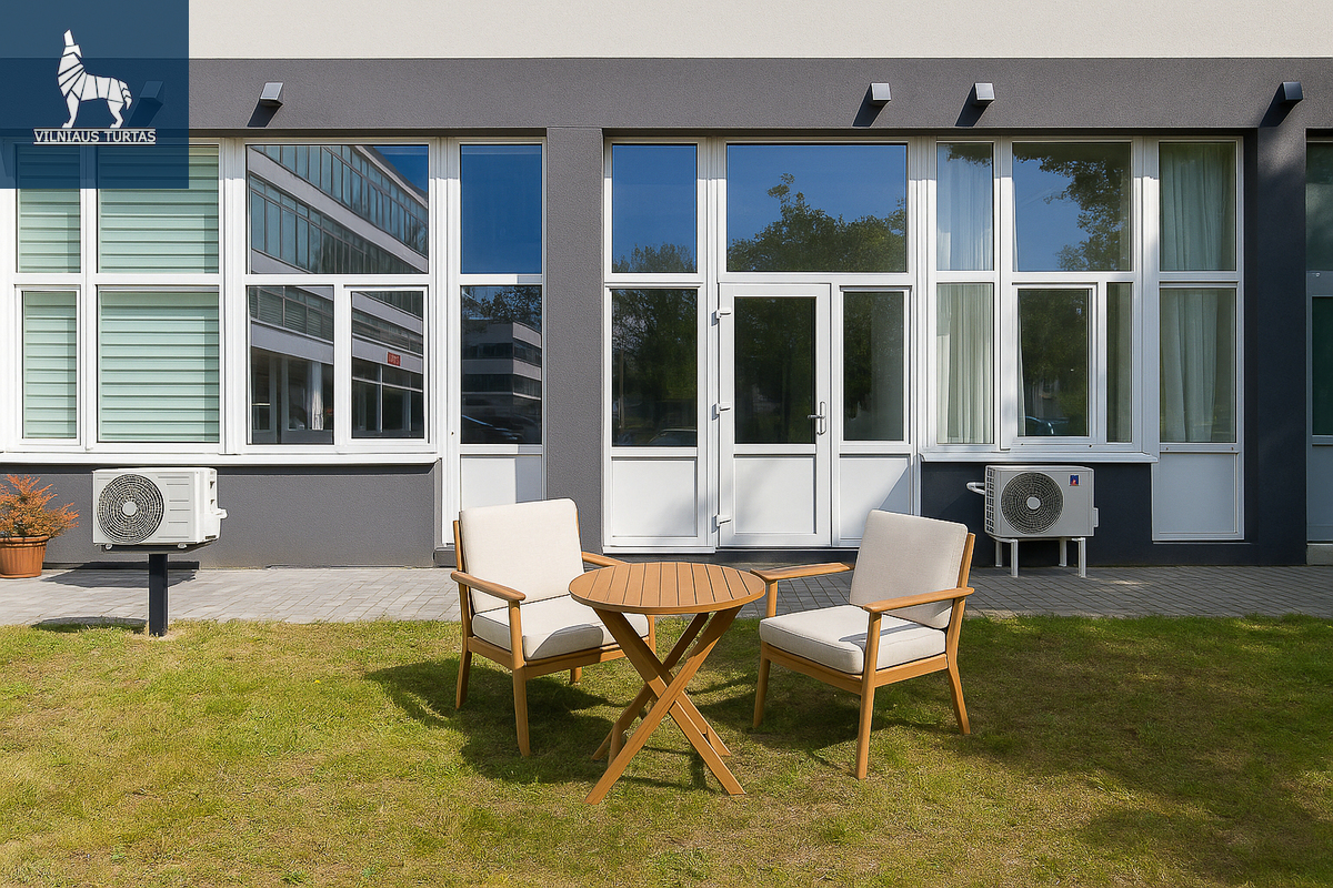 + Pirmas aukštas su tiesioginiu išėjimu į žalią kiemą – puikiai tinka klientų ar darbuotojų poilsiui