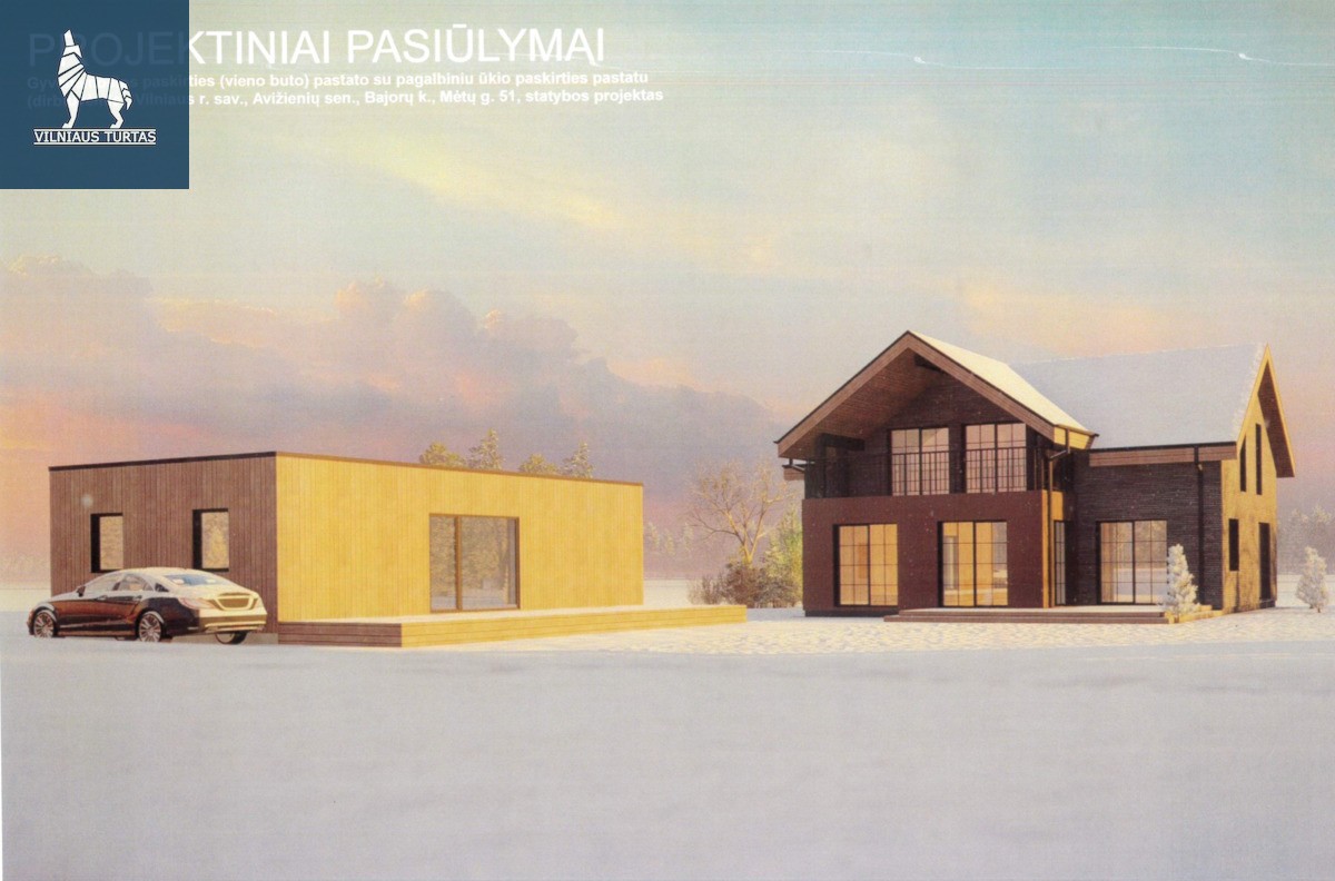 Sklype stovi modulinis namas, kuris registruotas kaip lauko virtuvė su terasa, bet galima užregistruoti kaip nama arba palikti kaip yra ir šalia pastatyti didesnį namą, yra projektas namui, kurio numatomas bendras plotas yra 168 kv.m.