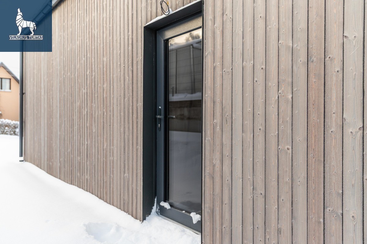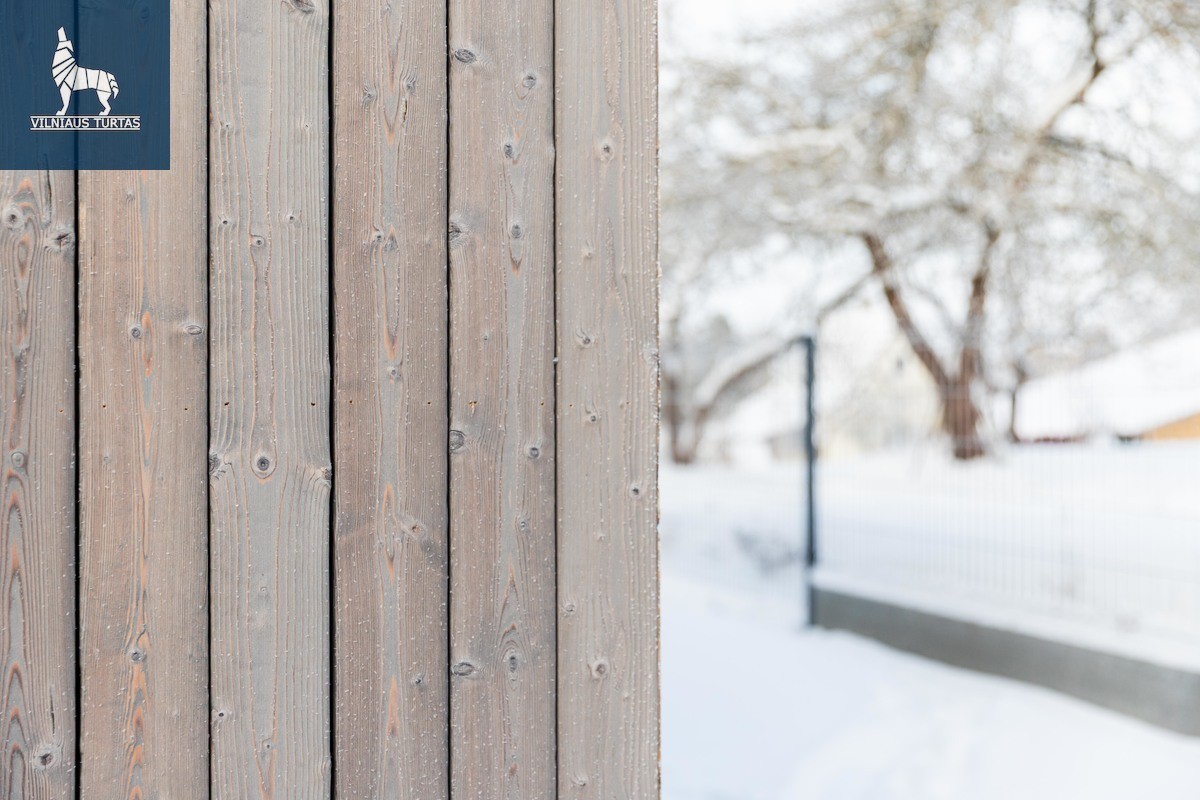 ・Fasadas – deginta ir alyvuota mediena, po dailylentėmis įrengtas apsauginis tinkliukas nuo vabzdžių