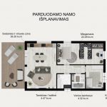 Šis namas suplanuotas taip, kad kasdienis gyvenimas čia būtų lengvas ir jaukus. Svetainės ir virtuvės erdvė natūraliai susilieja į vieną bendrą zoną, o dideli vitrininiai langai įleidžia daug dienos šviesos. Iš svetainės pateksite į erdvią, apie 25 kv. m terasą – vietą ramiems rytams su kava, ilgiems vasaros vakarams ir laikui, praleistam su šeima ar draugais, o 6 arų sklypas suteiks erdvės vaikams mėgautis žaidimais, o suaugusiems gamta, auginti ekologiškas daržoves ir vaisius ar tiesiog ilsėtis.