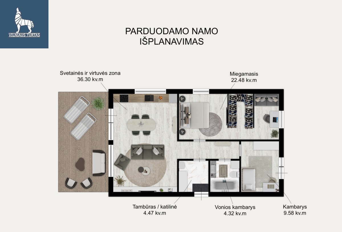 ・Terasa – iš termo medienos, atspari deformacijoms, nepūva, nesisakuoja