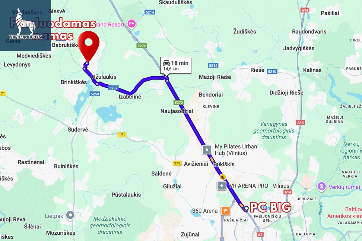 Vos apie 10 minučių kelio automobiliu iki PC „BIG“, patogus privažiavimas beveik asfaltu iki pat sklypo. Aplink – individualių namų kaimynystė, daug erdvės, žalumos ir privatumo.