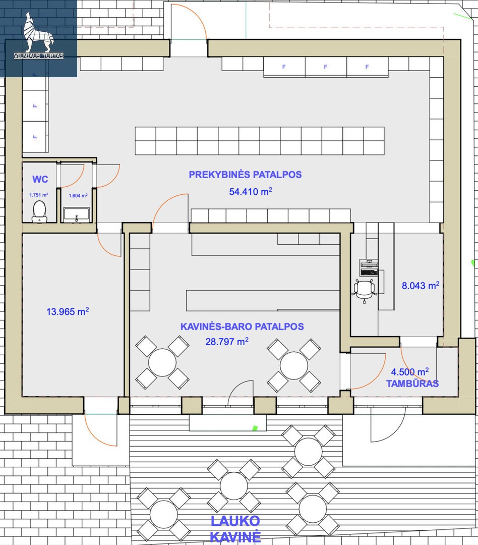 Pagrindinis pastatas (parduotuvė / kavinė): 103,50 kv. m