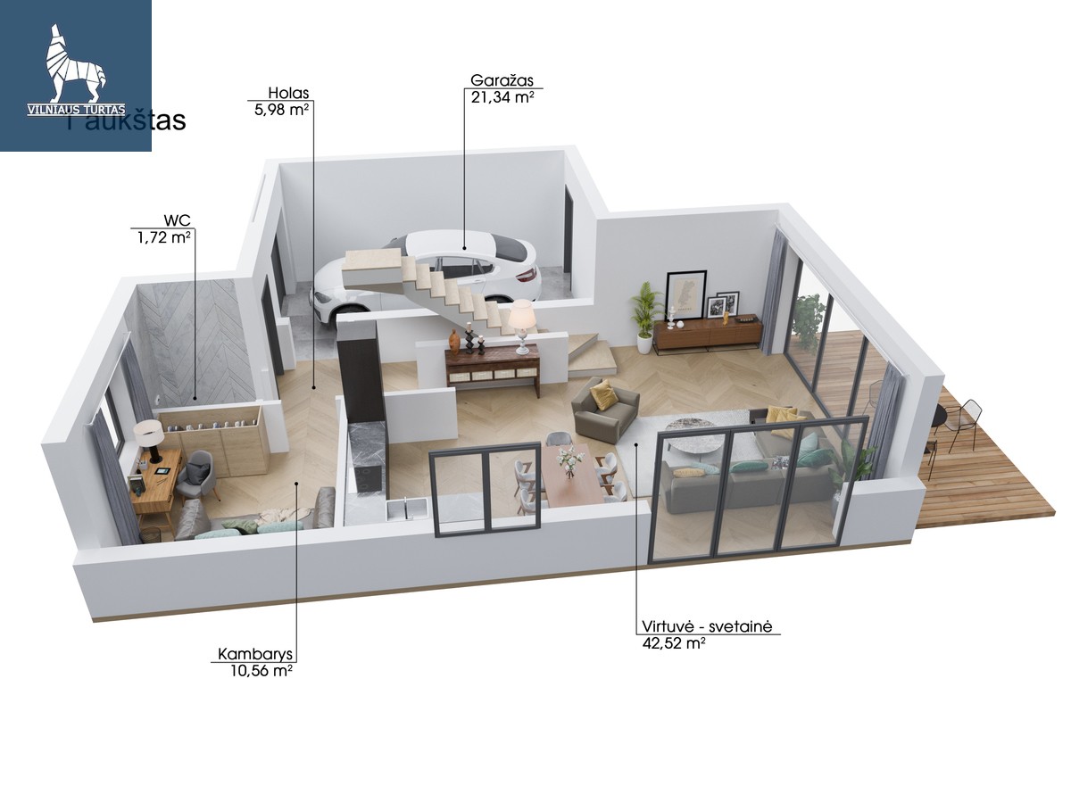 ✓ Namai sublokuoti per garažus – jokio kaimynų triukšmo;