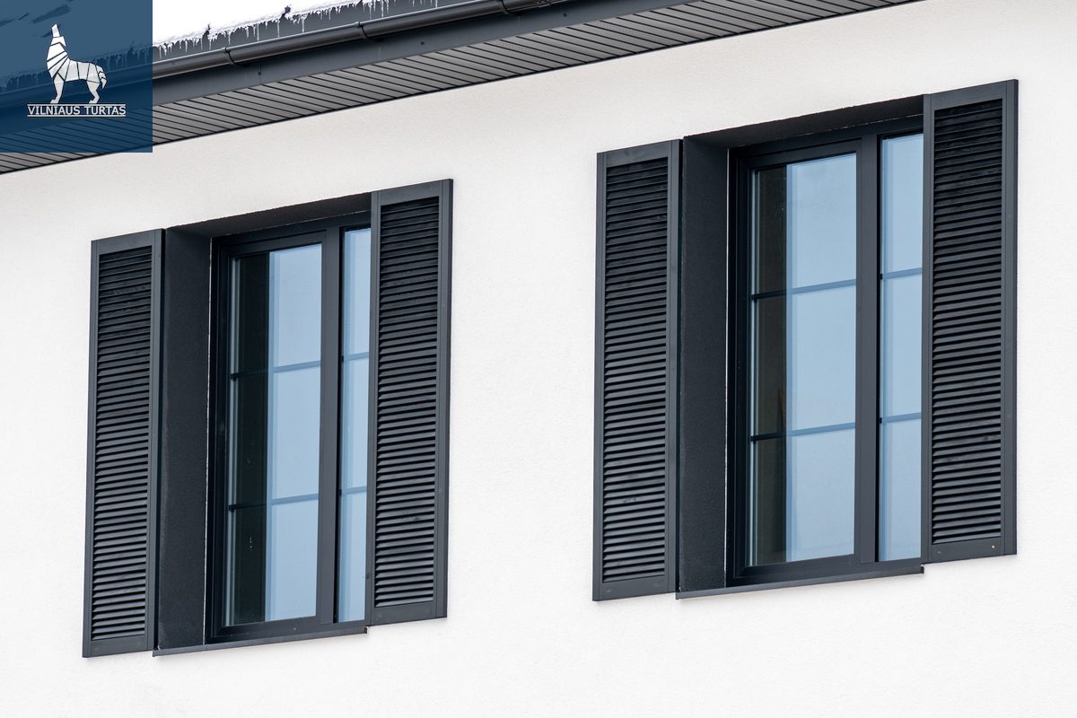 Fasado apdaila – skalūnas, termomediena, skarda – pagal projektinius brėžinius, akmuo;