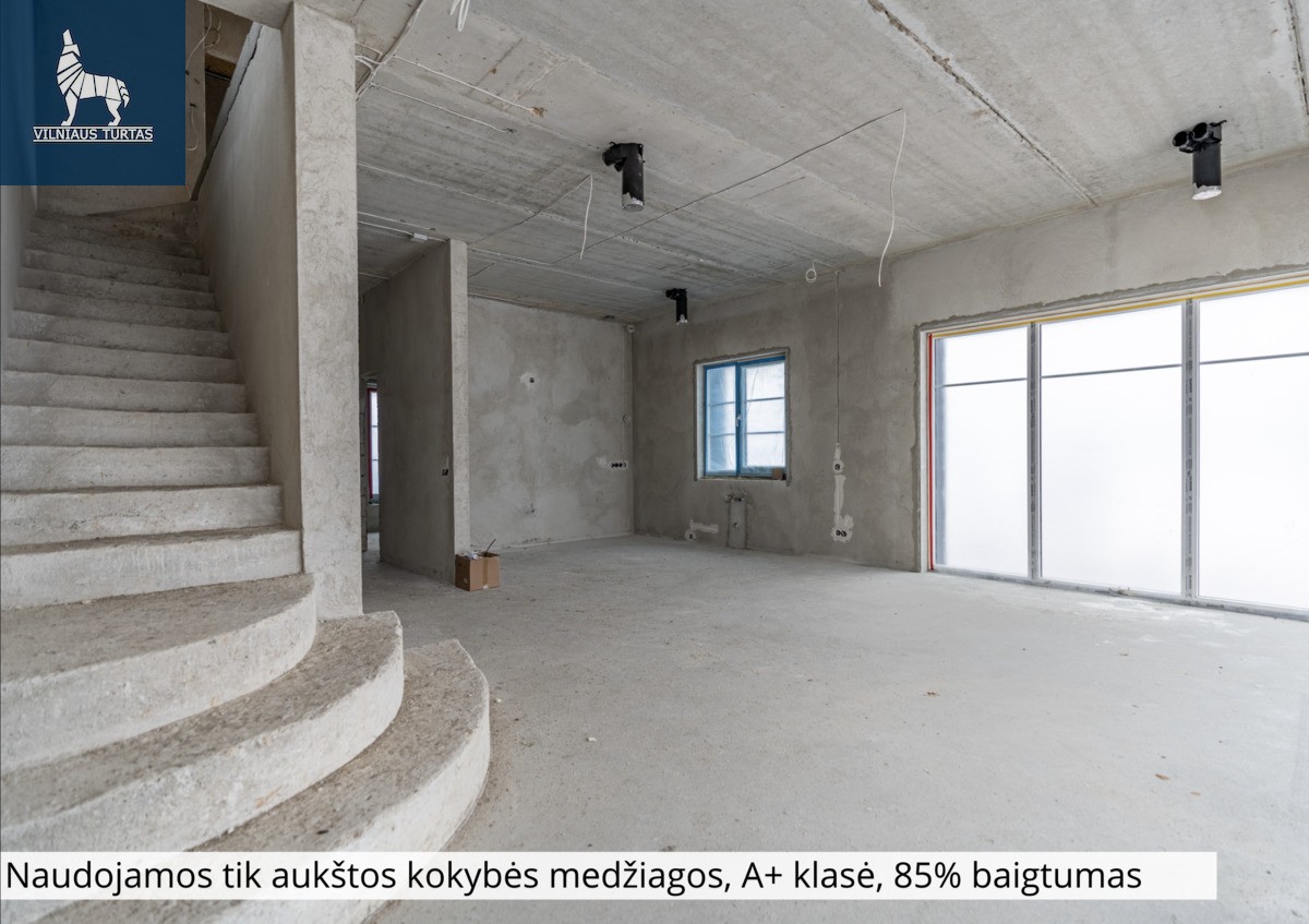 Namai atitiks A++ klasę, bus parduodami su 85% baigtumu. Architektų komanda pasirūpino, kad šiuose namuose visi kampeliai būtų išnaudoti praktiškai, o mėgstantiems erdves čia jų bus į valias, lubų aukštis virš 3 metrų! Namuose išvedžiojamos visos komunikacijos, įrengiama grindinė šildymo sistema, gerai garso izoliacijai ir kokybiškam gyvenimui užtikrinti vidinės pertvaros iš blokelių, sutvarkytas gerbūvis, namai sublokuoti per garažus, tad negirdėsite jokio kaimynų šurmulio. Privalumus galėčiau vardinti ir vardinti, tad susitikus papasakosiu daugiau apie šį išskirtinį, kokybišką ir dėmesio vertą projektą!