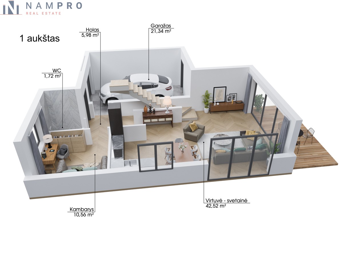 ✓ Namai sublokuoti per garažus – jokio kaimynų triukšmo;