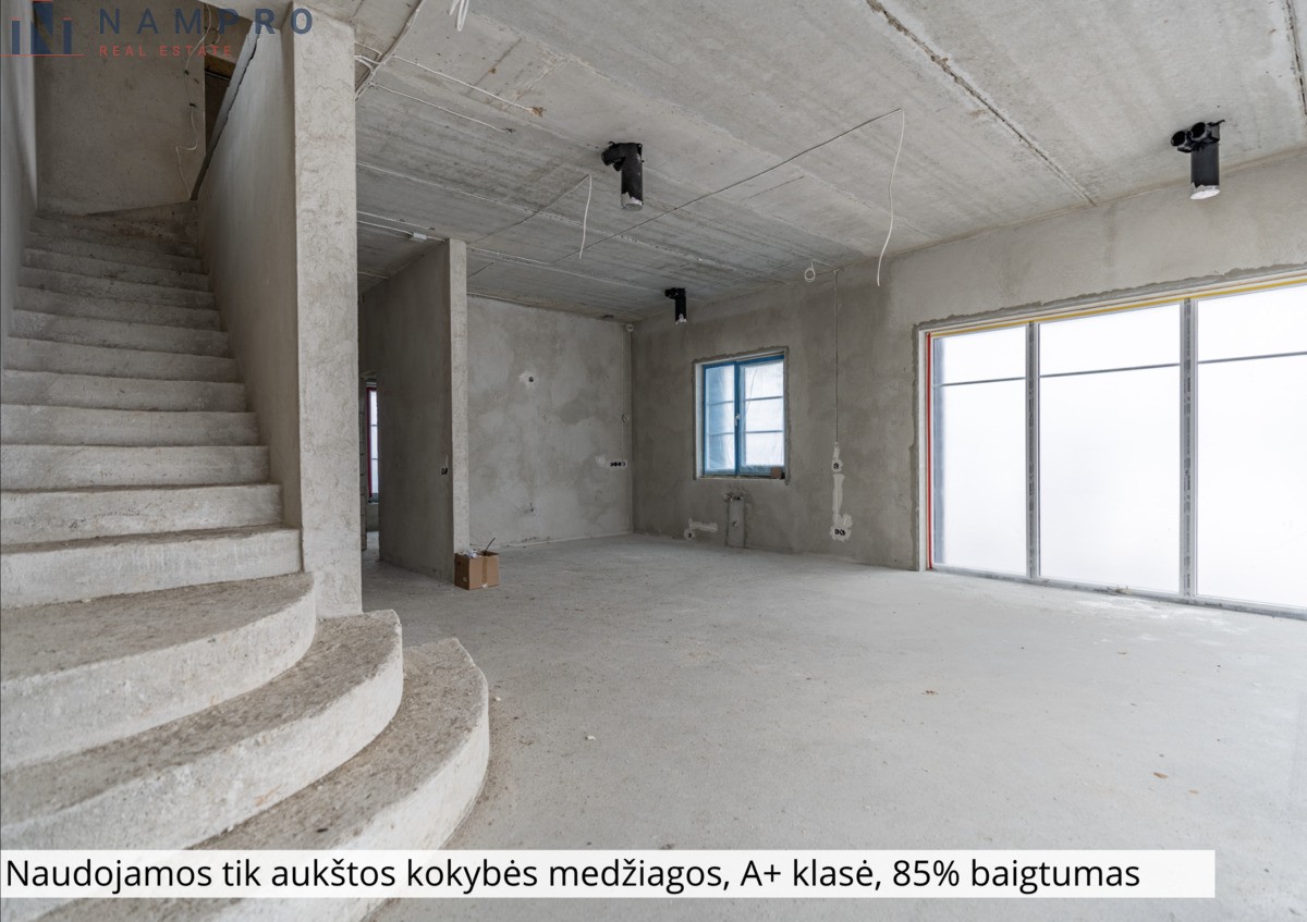 Namai atitiks A++ klasę, bus parduodami su 85% baigtumu. Architektų komanda pasirūpino, kad šiuose namuose visi kampeliai būtų išnaudoti praktiškai, o mėgstantiems erdves čia jų bus į valias, lubų aukštis virš 3 metrų! Namuose išvedžiojamos visos komunikacijos, įrengiama grindinė šildymo sistema, gerai garso izoliacijai ir kokybiškam gyvenimui užtikrinti vidinės pertvaros iš blokelių, sutvarkytas gerbūvis, namai sublokuoti per garažus, tad negirdėsite jokio kaimynų šurmulio. Privalumus galėčiau vardinti ir vardinti, tad susitikus papasakosiu daugiau apie šį išskirtinį, kokybišką ir dėmesio vertą projektą!