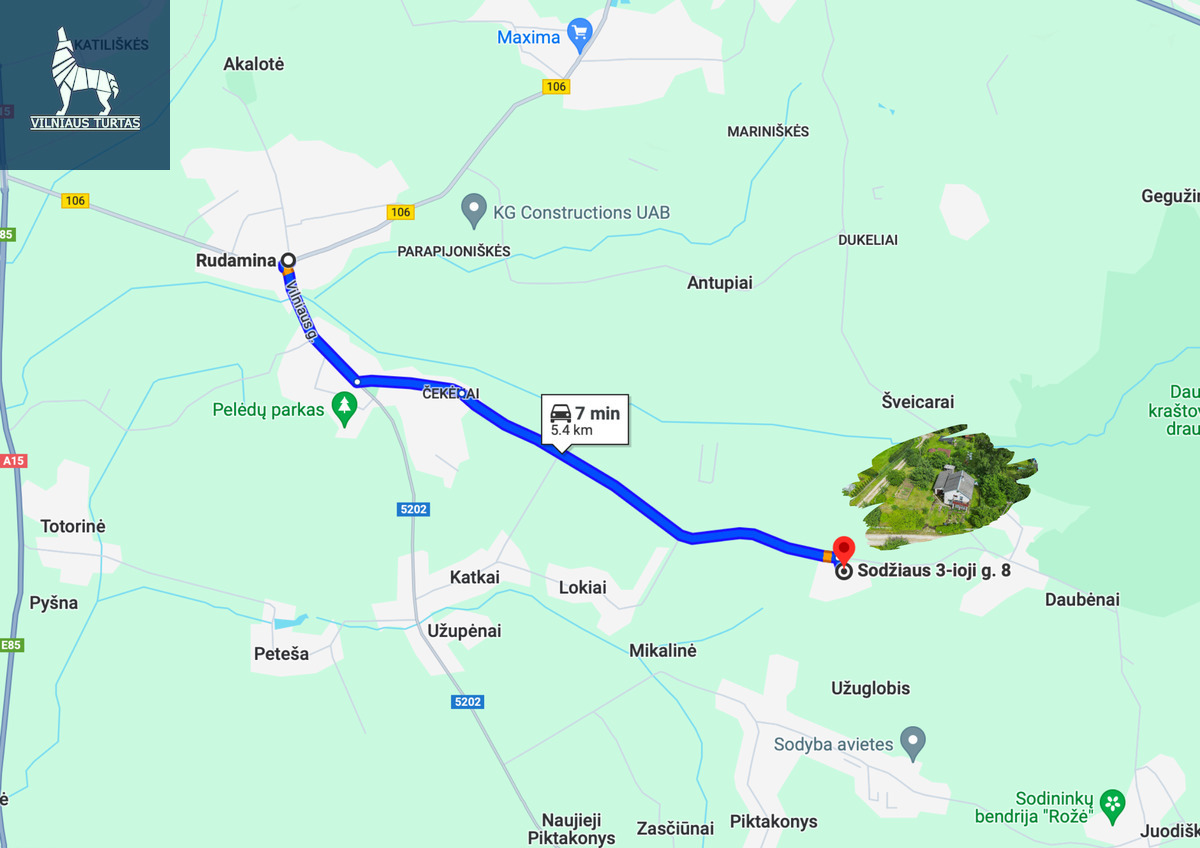 Vos kelių kilometrų atstumu – Rudamina ir Skaidiškės. Čia rasite įvairias paslaugas, kurių reikia patogiam gyvenimui: parduotuvės, mokyklos, medicinos įstaigos bei sporto ir kultūros centrai. O iki Vilniaus miesto tik 15 kilometrų! Gyvenkite gamtos apsuptyje, nenutoldami nuo miesto teikiamų privalumų.
