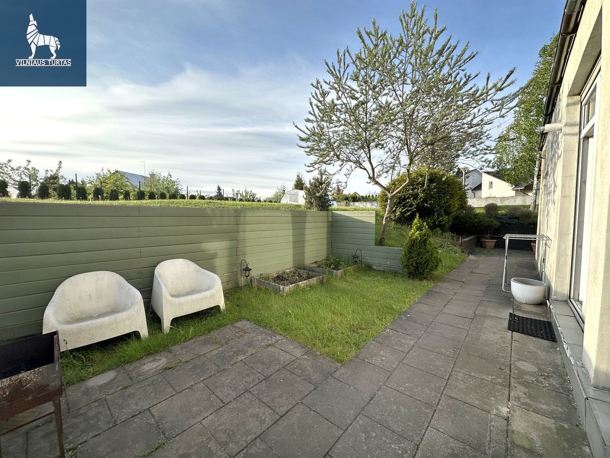 Vyčio g., Galgiai, Vilniaus rajonas, 1 aukštas iš 3, buto plotas 37.84 kv.m, bendras plotas 40.14 kv.m. (buto ir bendru patalpu), butui priklauso sklypas 1.70 arai (yra pažymėta plane), statyba 1992 m, bet pilnai renovuotas 2007 m. Mūrinis, terasa (kiemas), vonia ir tualetas atskirai. Atskiras miegamasis, svetainė kartu su virtuvė.