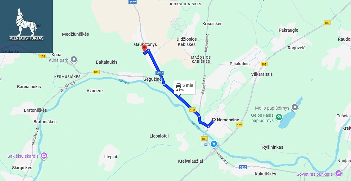 – Iki Nemenčinės miesto centro 4 km ;
