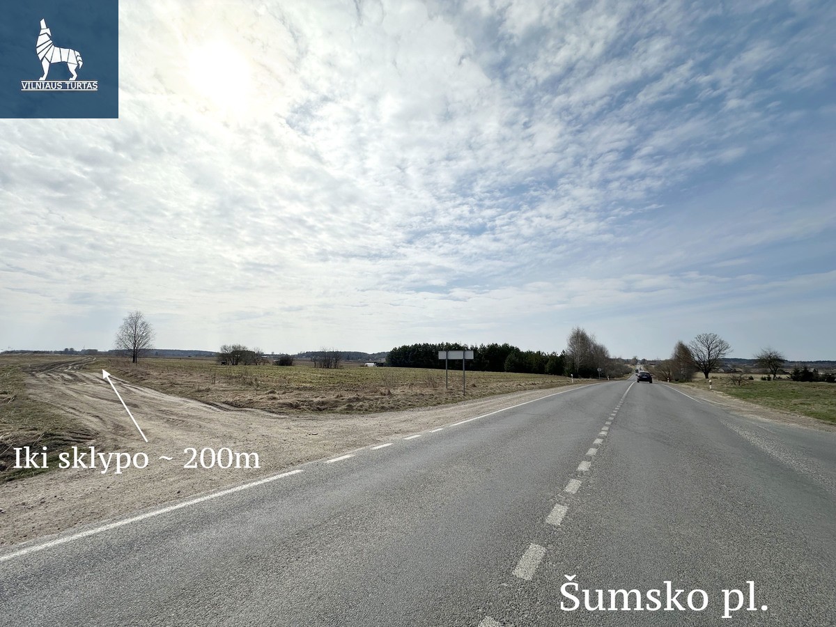 Iki sklypo yra geras privažiavimas, Šumsko plentu, tik 200 m nuo plento.
