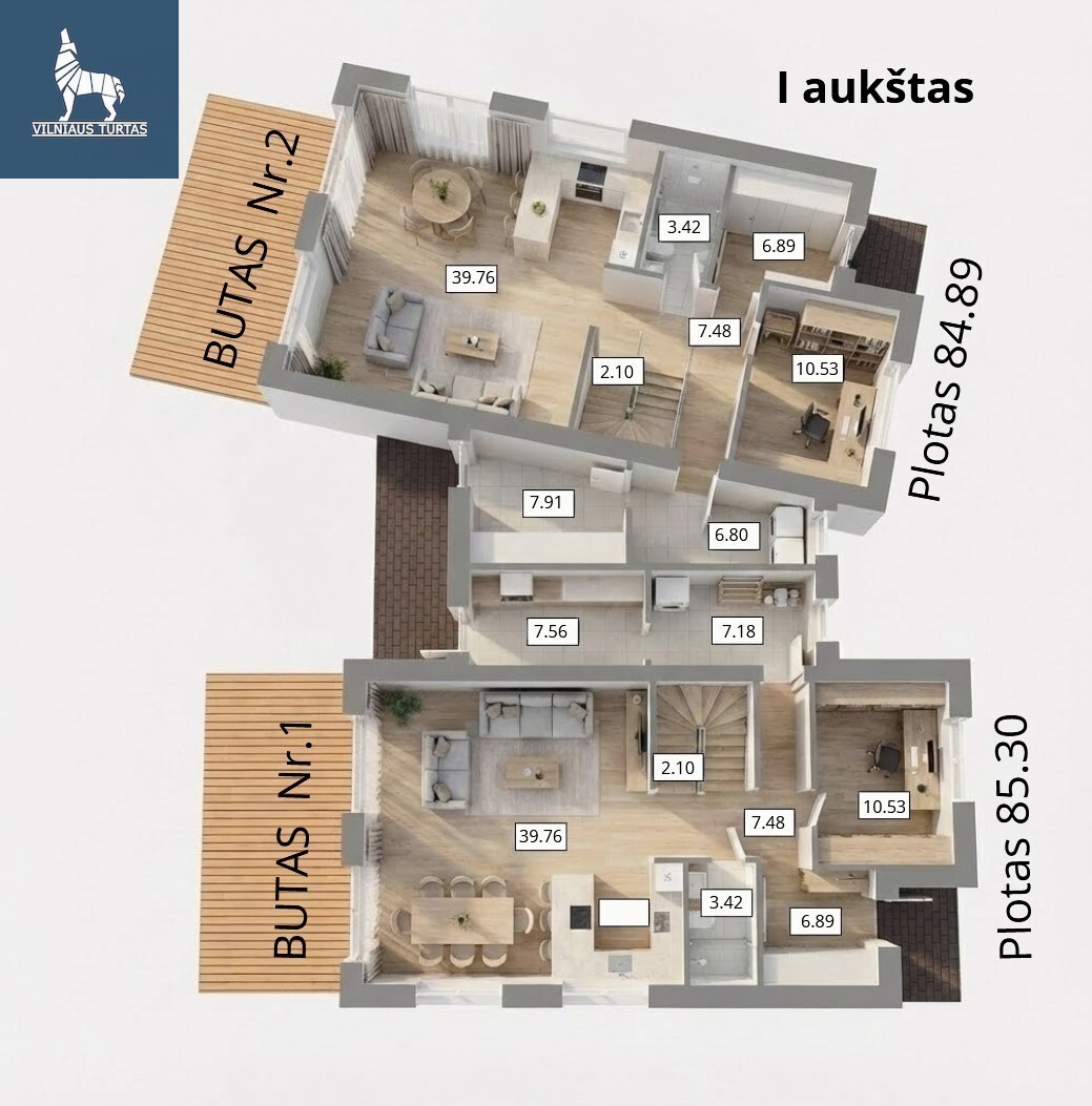 Dviejų butų pastato bendras plotas: 310,24 kv.m.