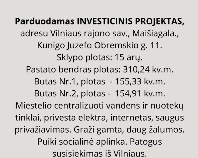 Parduodamas dviejų butų pastato INVESTICINIS PROJEKTAS,