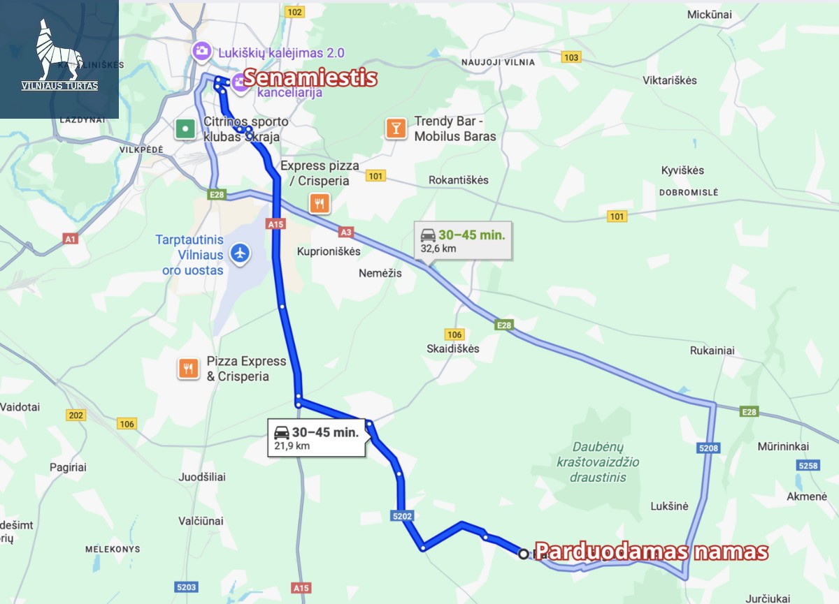 Iki Vilniaus centro ~25 min. automobiliu (20 km).