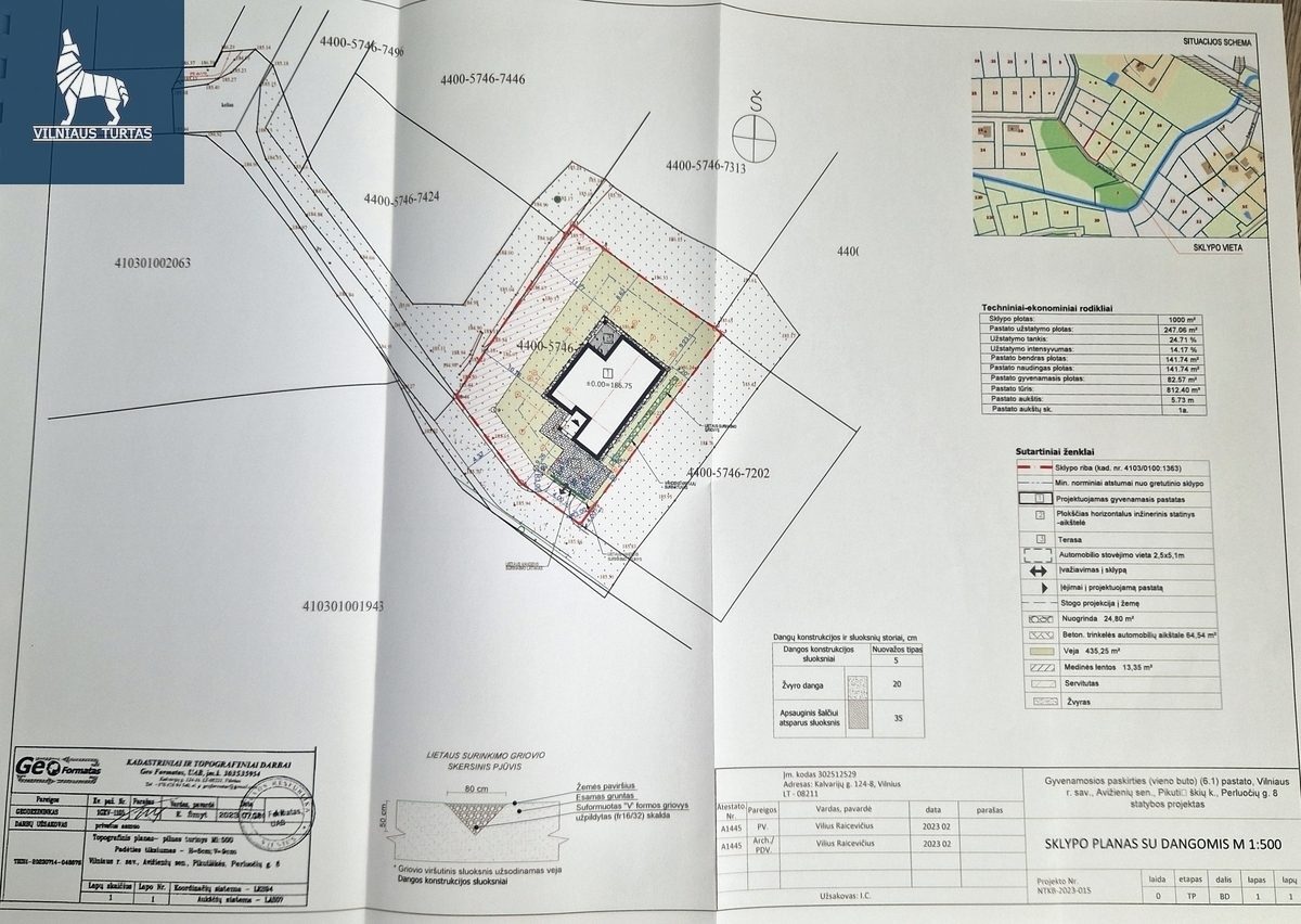 * Yra namo projektas (2024 m.) ir statybos leidimas;