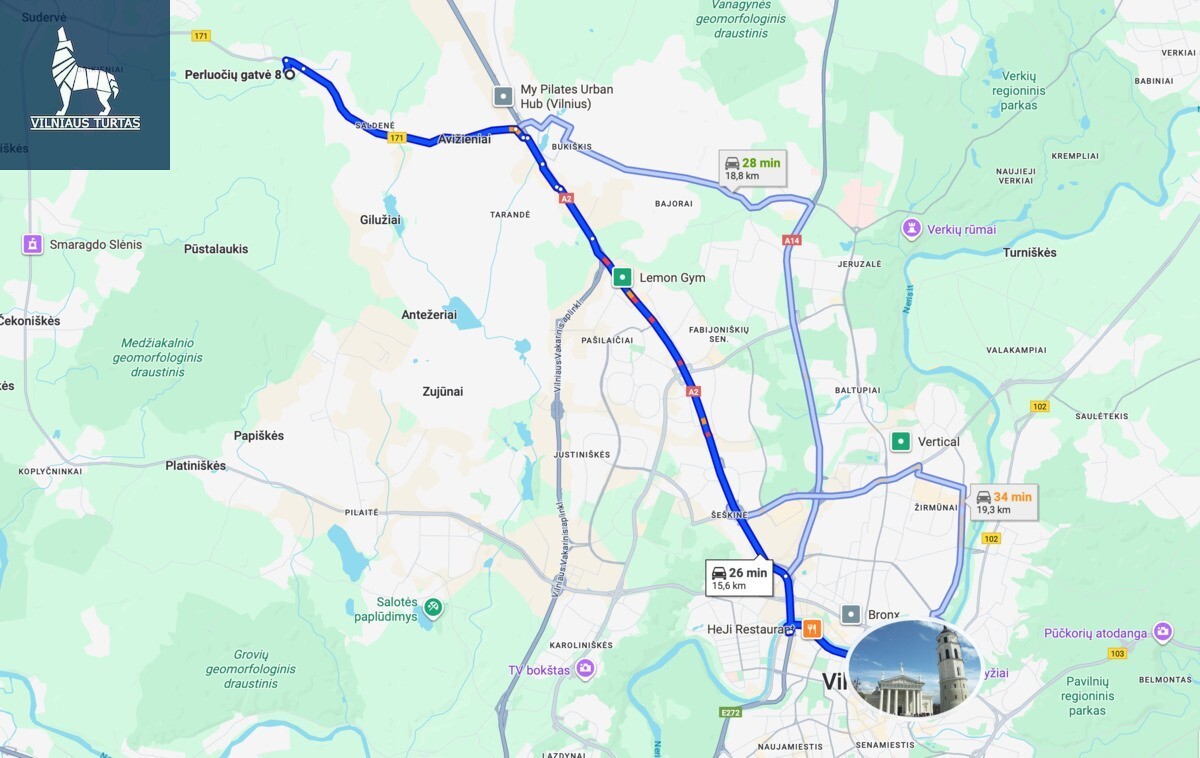 * Puikus susisiekimas su Vilniumi viešuoju transportu – važiuoja 108, 110, 127 maršrutų autobusai;