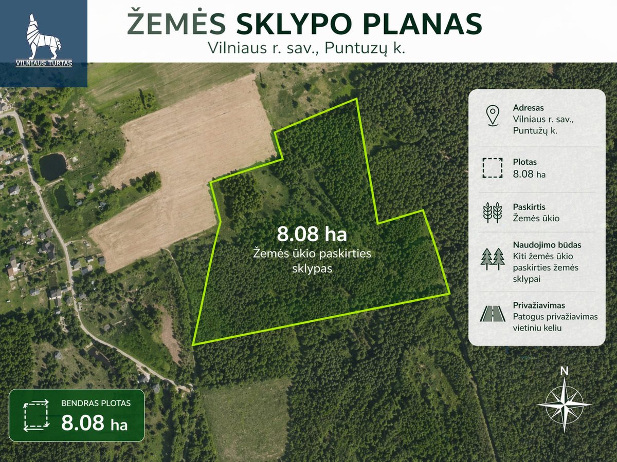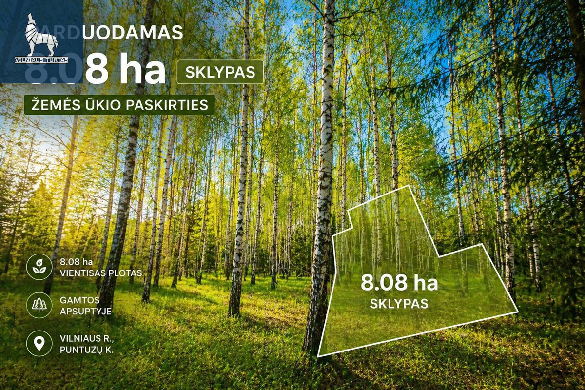 PARDUODAMAS 8,08 HA SKLYPAS GAMTOS APSUPTYJE, VILNIAUS RAJONE LAVORIŠKIŲ SEN., PUNTUZŲ K.